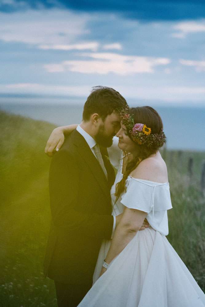 They had a humanist ceremony which was really personal. “We liked that we could have a bit of humour. We drank delicious whisky from a quaiche, and two of our good friends did a Robert Burns reading, which as it turned out had so many innuendos we were amazed they got through it! We had four amazing silk drapes hung above us, they were hand painted by our florist Gill and were so beautiful. We have them at home now and remind us of our perfect day.”