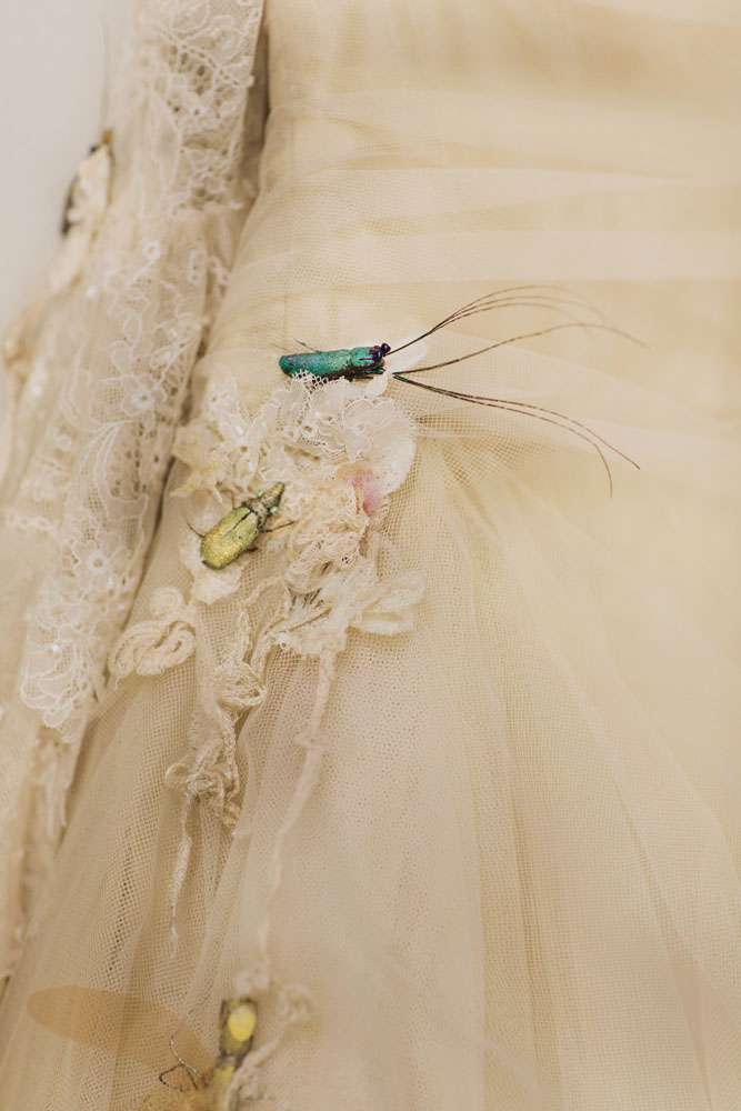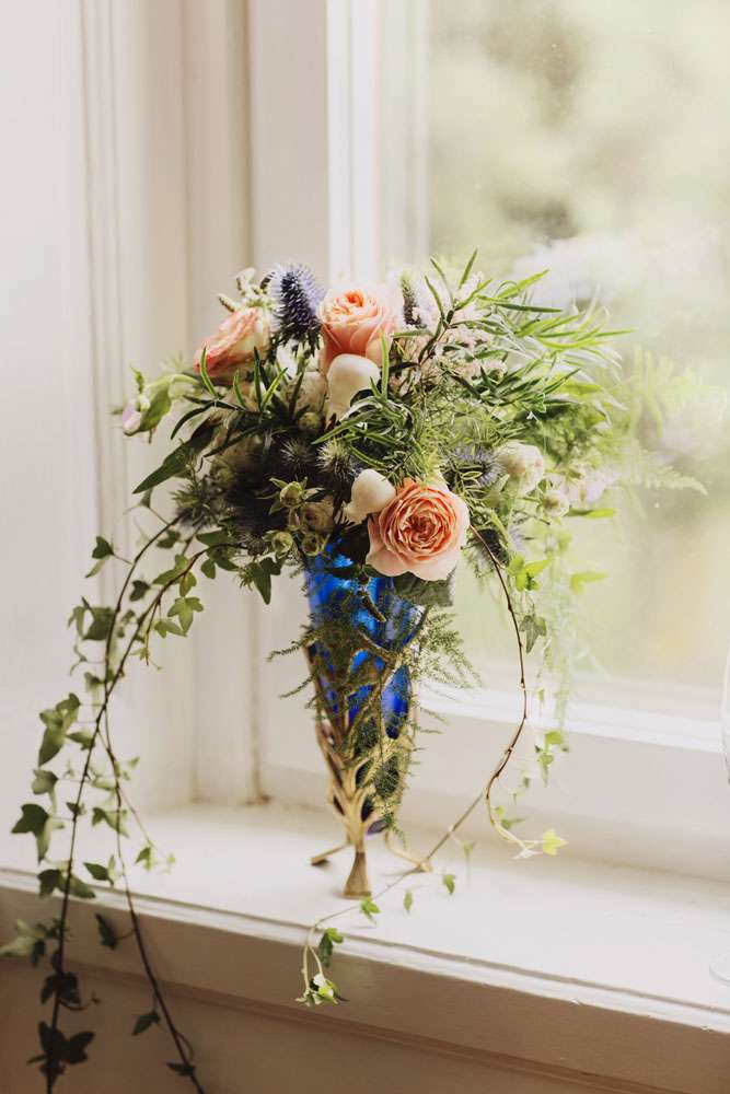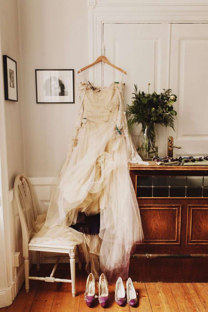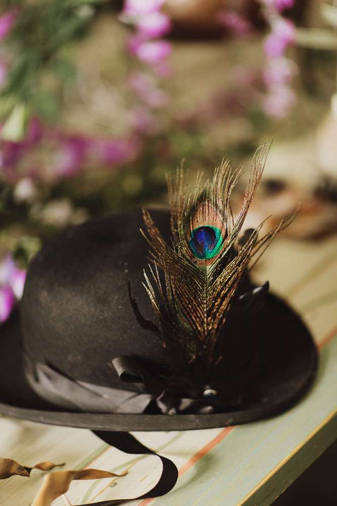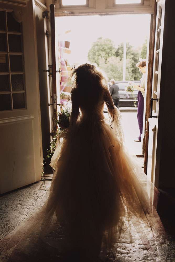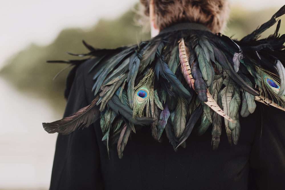The bride had her dress made by The Couture Company in the UK and the groom rocked a morning suit owned by his grandfather! “My dress was magical and working with Jo at The Couture Company was a joy from start to finish. My shoes came from Amazon and I decorated them myself. I also customised Karl’s suit a bit with feathers and some homemade little insects to match my dress. I made his antlers too, in black and gold. The influences for both of our outfits came from Titania and Oberon in A Midsummer Night’s Dream.”