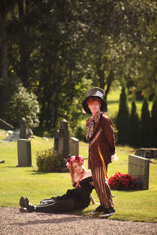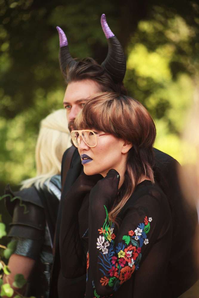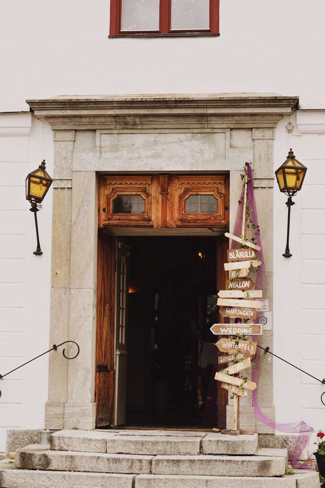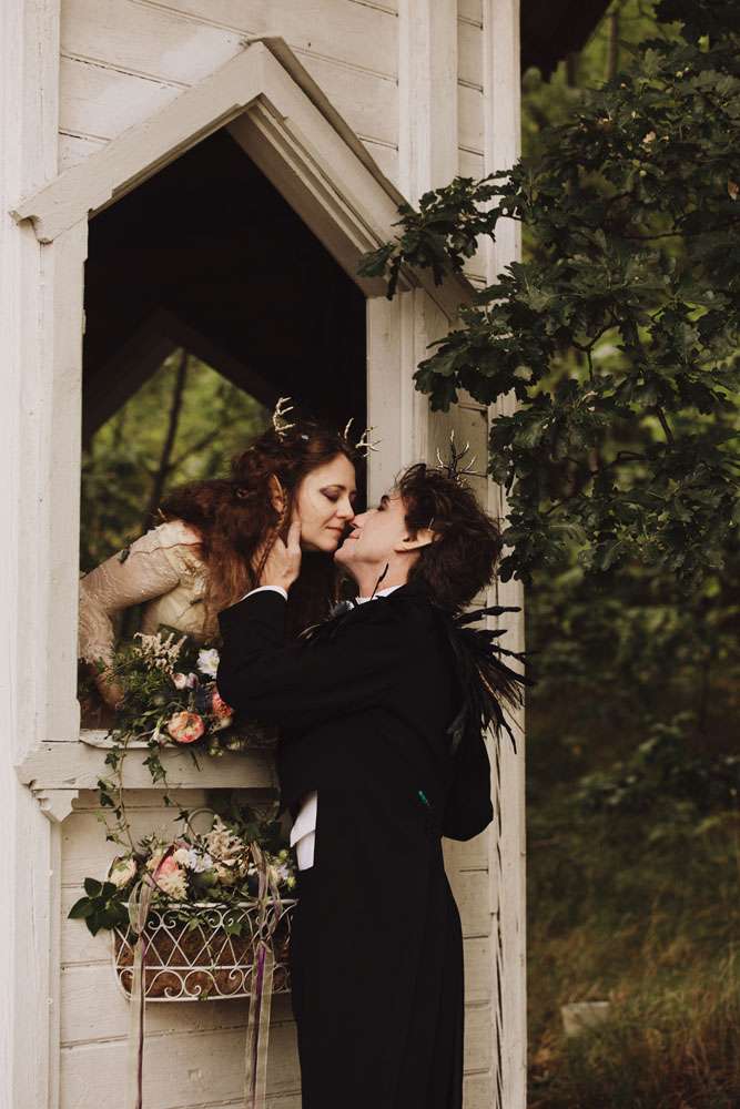 “I think one of our most unique details was that we wore elf ears and antlers. We also had a string duo play Raines of Castamere in the church, right after the ceremony, with the doors guarded by a werewolf and an albino elf warrior! Nothing about our wedding was normal! The ceremony was in a church. My parents married there, it’s small, pink and very pretty. We are not religious, I was surprised that Karl (being a very clear atheist) really wanted a church wedding, but I don’t regret it one second. It all came down to the priest being so wonderful and inclusive. I had great memories of her from my confirmation, and was thrilled when she said she would do the ceremony. She has the rainbow flag outside her church, it was a very positive message of love.”