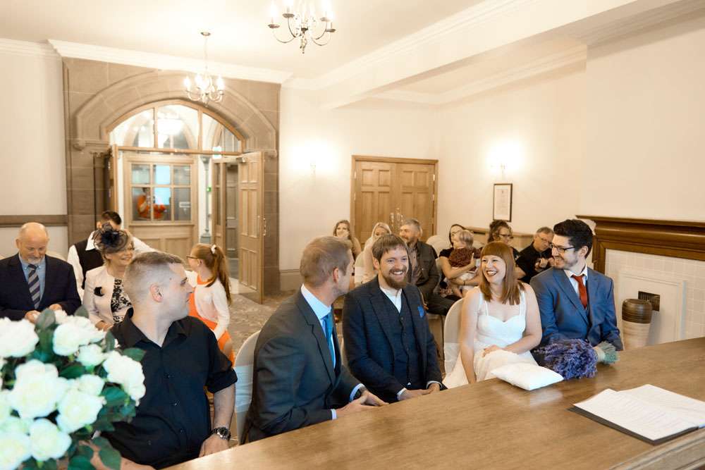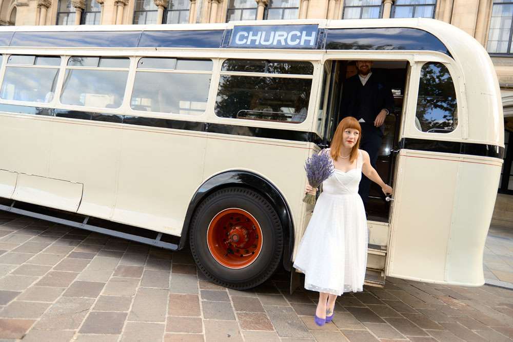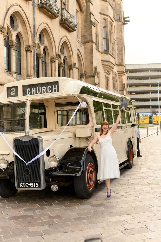Their favourite part of the wedding was actually travelling to the registry office in the morning. “We both got ready together at home then met up with just our closest friends and family at a local hotel and all travelled to the registry office together in a beautiful vintage bus from the Yorkshire Heritage Bus Company. I wore a cute vintage style dress in the morning as I wanted to keep the suspense for the ‘real’ dress for later. But the atmosphere was just amazing. You could feel everyone’s excitement! We know it’s not traditional for the bride and groom to travel to the ceremony together, but we wouldn’t have missed that feeling for the world.”