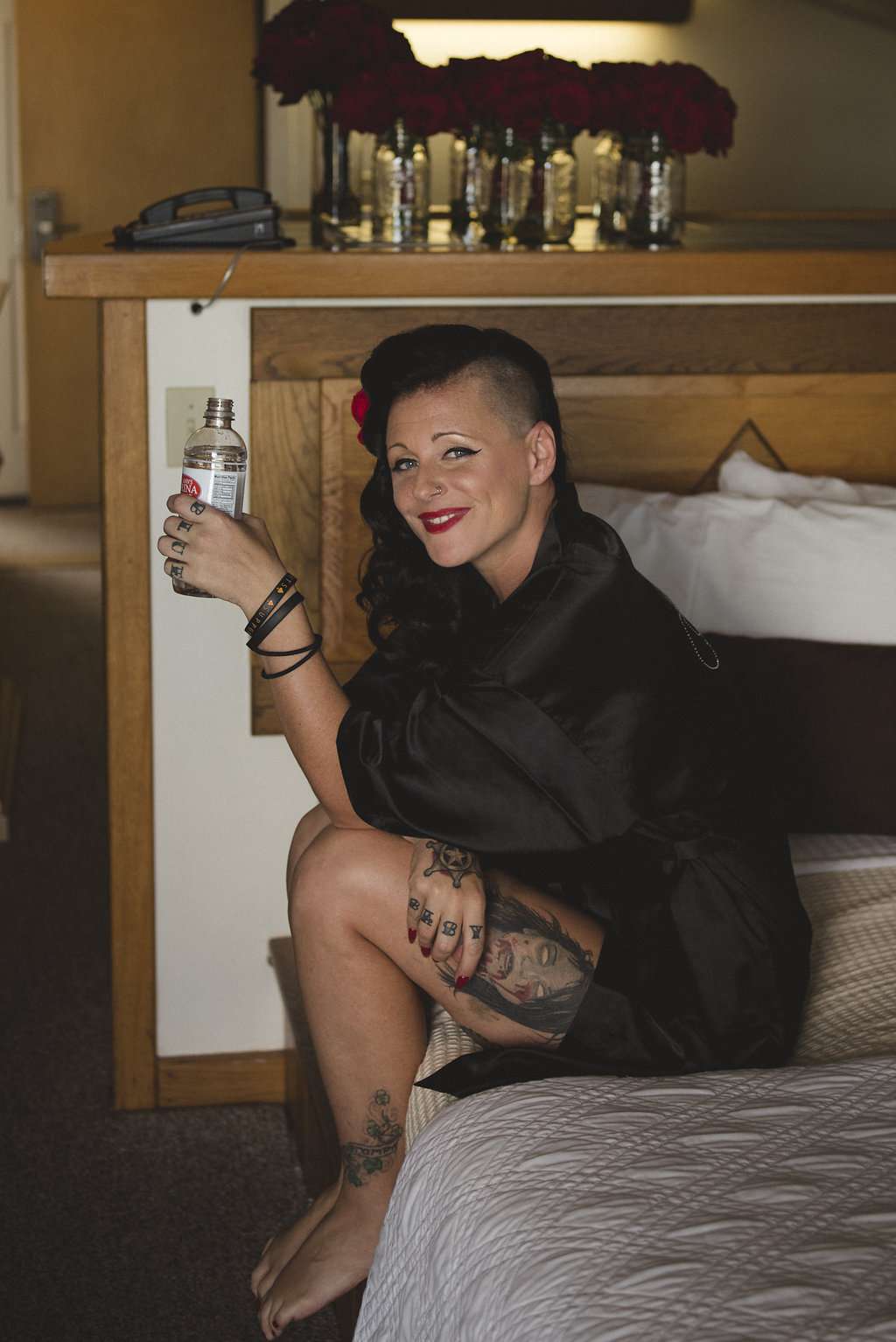 Sioux and Tommy wanted their wedding to reflect their combined attitudes and what their life is all about. Sioux is a pin up girl and Tommy loves hot rods and Rock n Roll. Their relationship is basically straight out of Pulp Fiction! Not surprisingly their wedding theme was a rockabilly, hot rod, Rock n Roll all out fun fest complete with cars, a candy table and a Harley Davidson set up next to the card table!