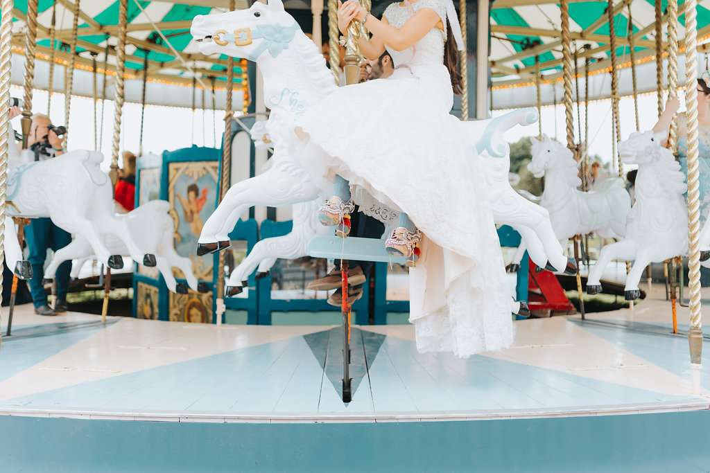 “We became Mr & Mrs Parnham on Thursday 28th July 2016”, said the bride. “We said our vows in a beautiful quaint church and spent a splendid afternoon and evening exploring old steam trains, having numerous rides on a carousel and dancing away the night to our vintage vinyl DJ.”