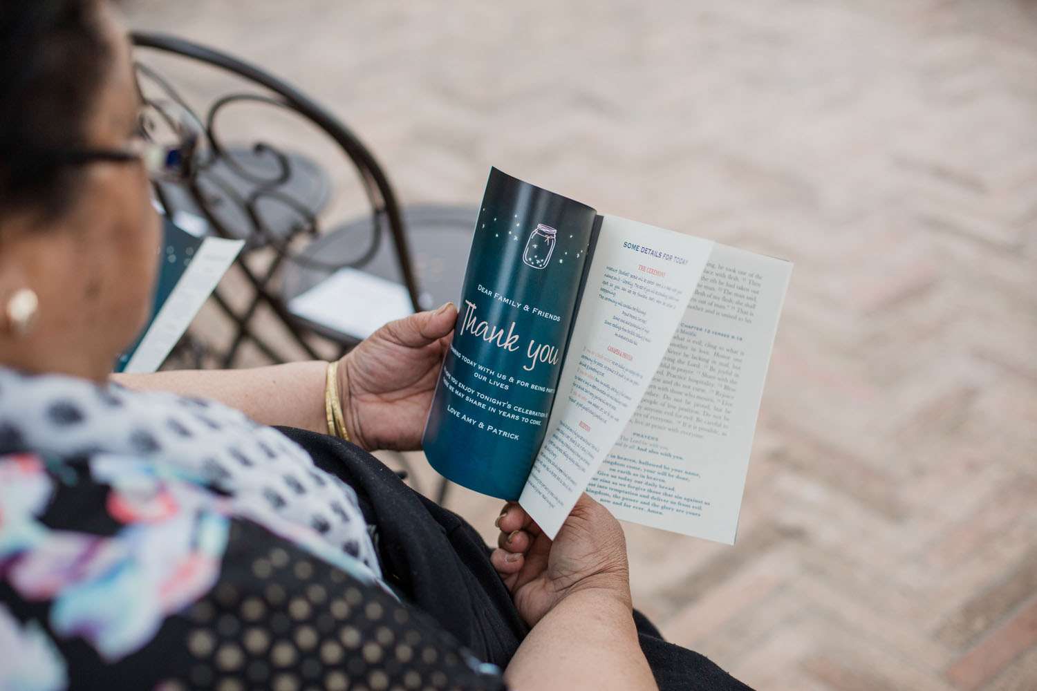 They wanted all their guests to be involved so decided not to have a bridal party. “We didn’t have a bridal party as we wanted all of our friends to be guests and not stressed during the ceremony or reception, let alone wearing clothes they would never wear again! I also decided not to wear a white, cream or ivory wedding dress and Patrick had a costume change halfway through the reception as he loved two suits!”