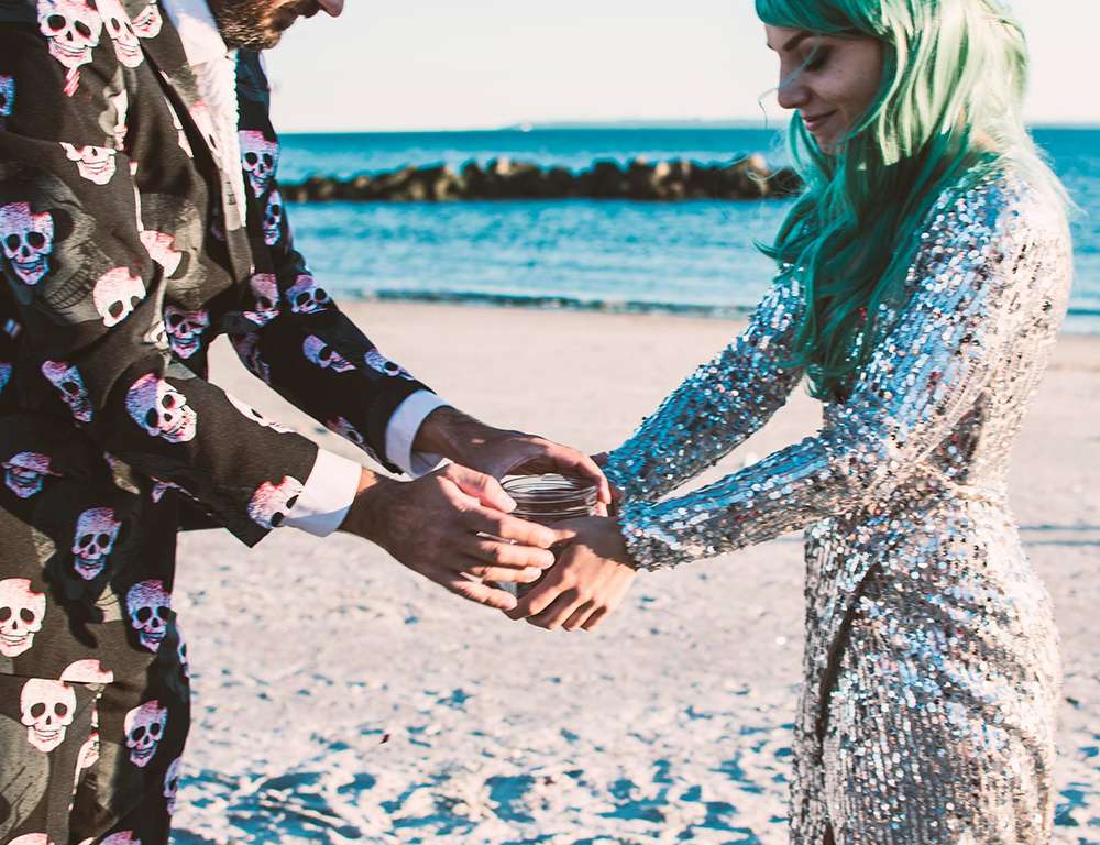 “When we were all gathered on the beach, Nenad read the words of legendary Serbian poet Dusko Radovic about marriage. These words are usually read at weddings in Serbia and it made a connection between our home country and beautiful Coney Island at that moment. After we both said ‘yes’, we did a sand ritual. As we didn’t receive our wedding bands from Etsy before the ceremony, instead of exchanging rings, we both took a handful of sand from where the other one stood barefoot while saying ‘Yes’ and merged them together in a jar. Later we got our rings as well, but the jar remains an important souvenir in our living room today.”
