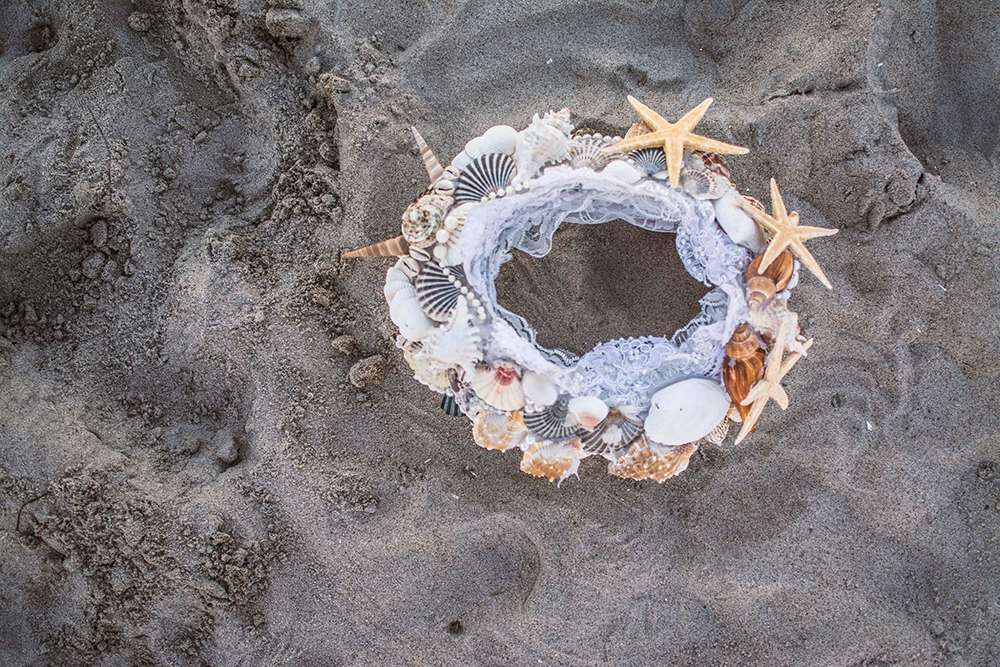 “Coney Island is also famous for it’s annual Mermaid Parade”, Milica continued, “so Aleksandar wore an skull tuxedo to look like a sea pirate who tried to get dressed nicely for his wedding! It also paid homage to his Rock n Roll background. I made his ‘tie’ which was symbolic of many people’s ‘friendly advice’ about what marriage really looks like! I also made my mermaid crown from shells and beads I collected on east side beaches and thrift stores.”