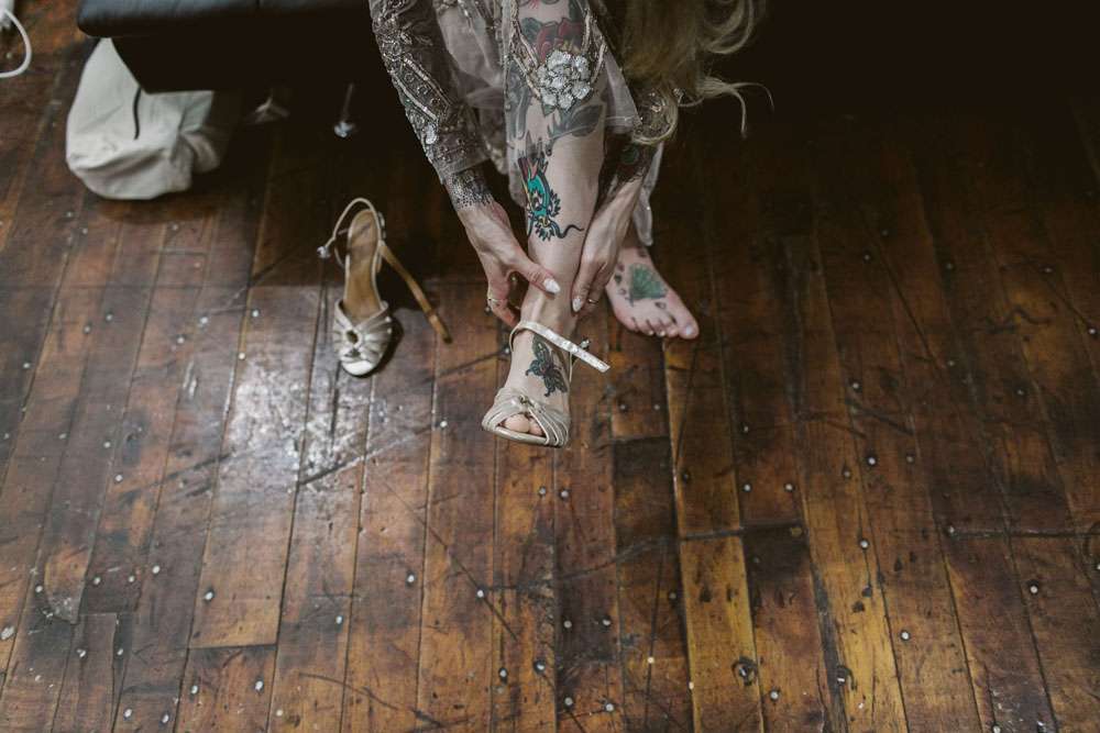“I then worked with magical Tara of The Williamsburg Seamster to make some small alterations. These tweaks made the dress feel even more personalised and special. I don’t wear leather, so for my shoes I had pretty limited options to choose from but I eventually happened upon some shimmery champagne wedges from BC Footwear. The colour was perfect and they were so comfortable!”