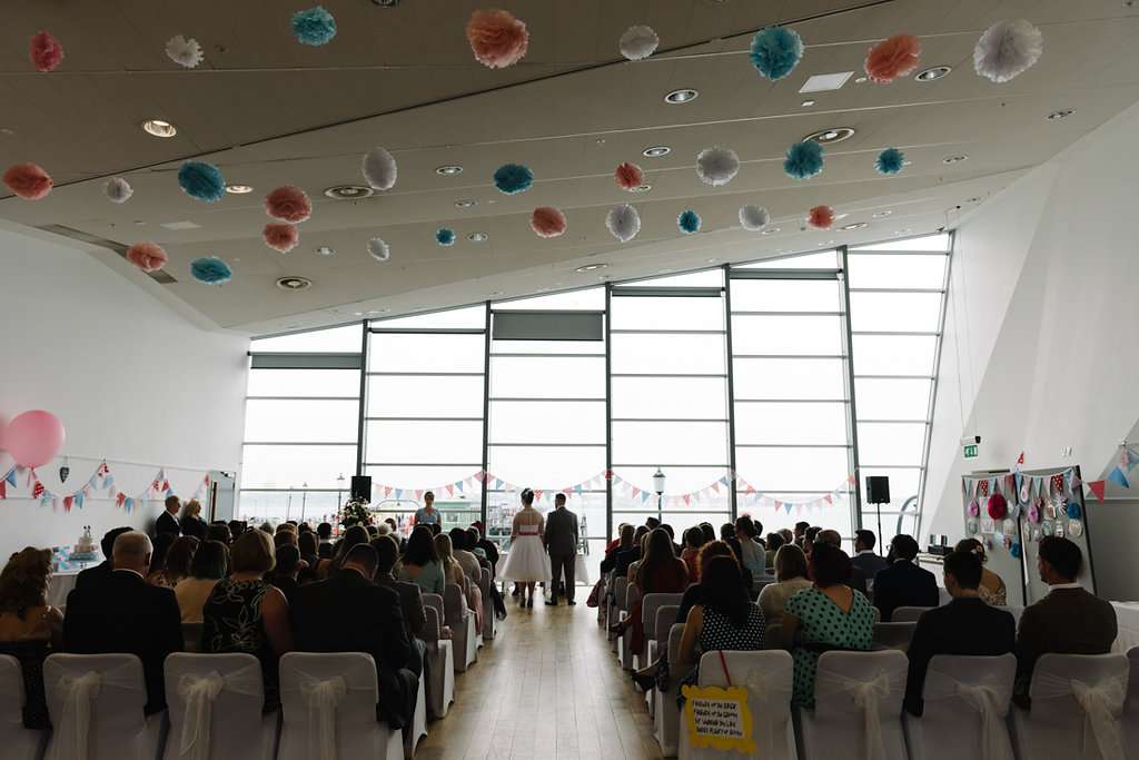 The wedding was held at the Royal Pavilion which is located a mile out to sea! “Pretty much every guest has said that they’ve never been to a wedding like ours before. Lots of people thought it was really cool that we were getting married on the pier. I also think the amount of handmade decorations is something that makes our wedding really different too, and so much of it was made by the Groom’s crafty mum that it was really special.”