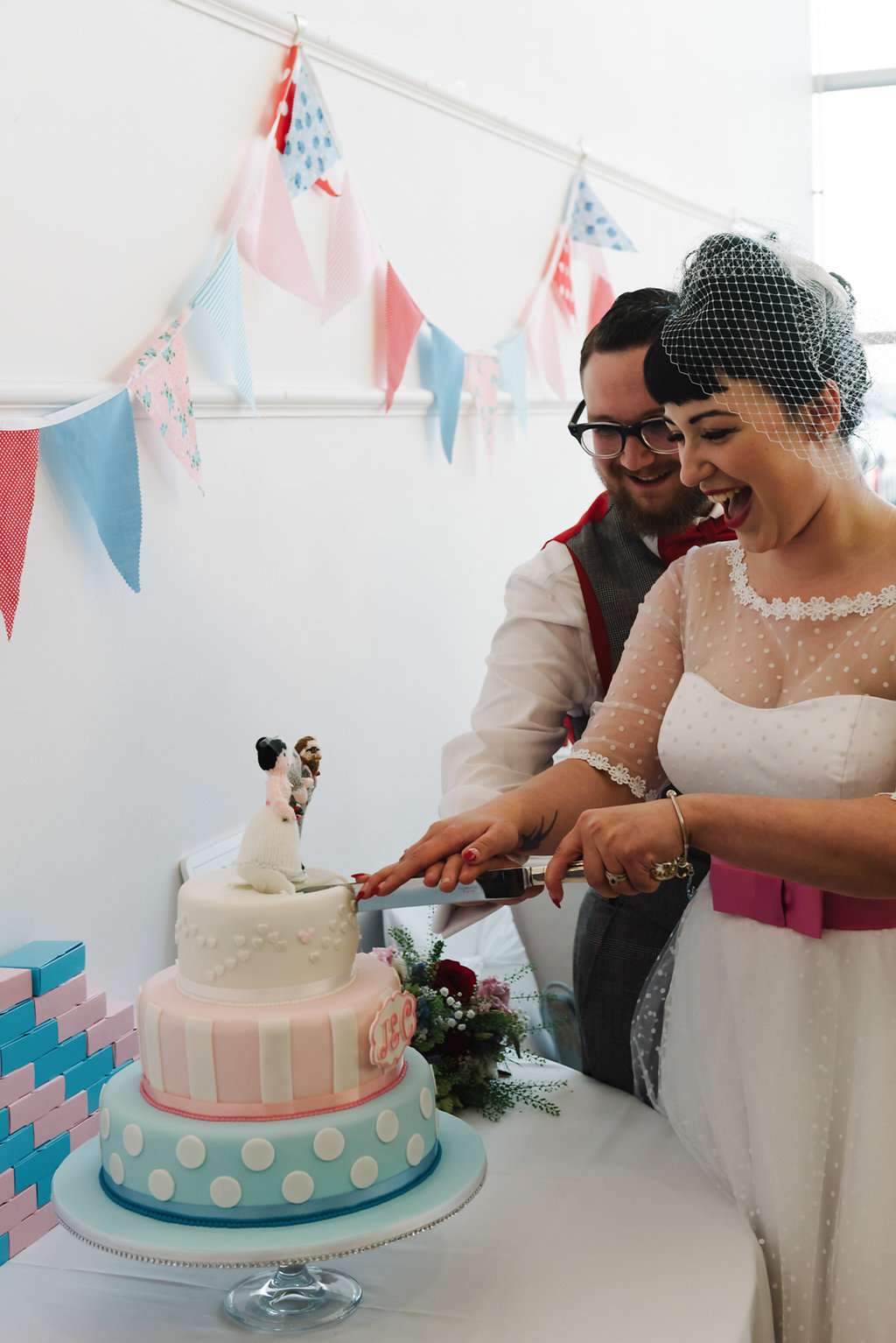 “The best thing about planning our wedding was telling people about what we were planning! People would ask us where we were going to get married, and as soon as we said ‘Oh, Southend Pier’ we got zillions of questions and people were so intrigued and excited by the location, the non-traditional speeches, the outfits that it made it even more excited and special for us. Also, the fact that we had so many of our family and friends offer their help and we spent a lot of time with people pulling things together was amazing.”