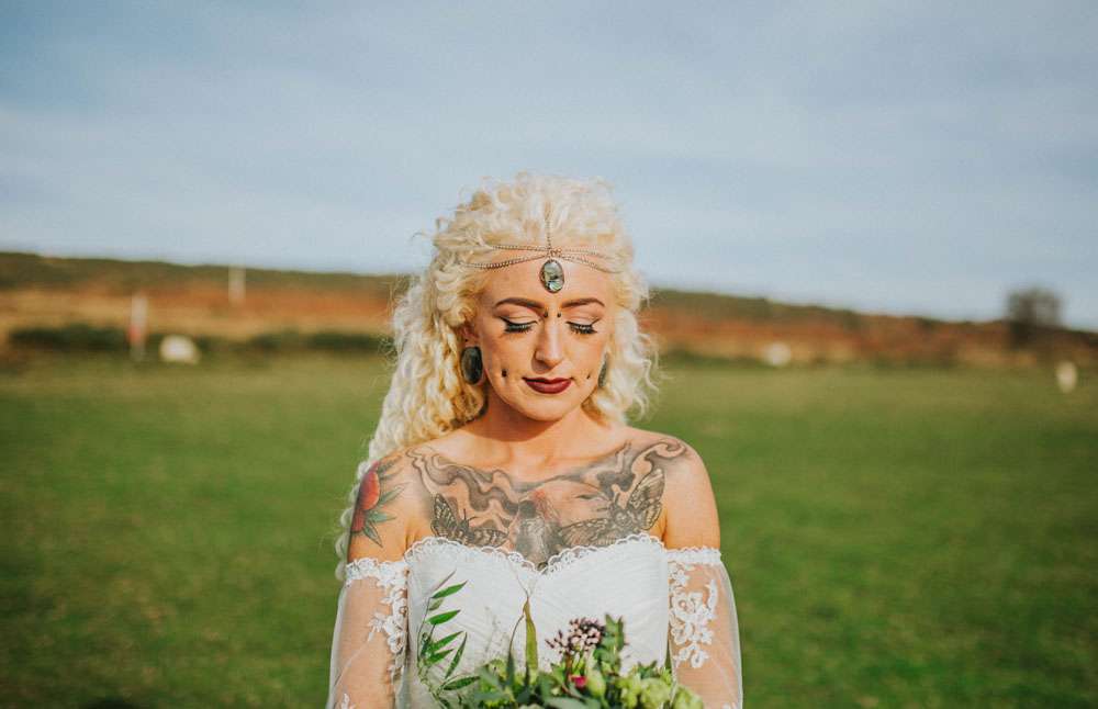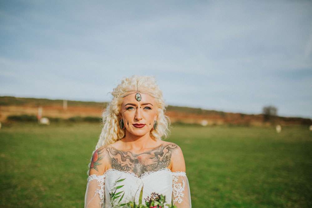 “My mum walked me down the aisle to a song that Sam and I call ours, Tears for Fears, Head Over Heels. We wanted our vows to be unique to us and reflect the way we love each other, so we wrote them. We both cried the whole way through. We exchanged rings but incorporated the Pagan tradition of handfasting. It was really nice to include an old ritual and I spent quite a while studying the meaning behind each colour of ribbon and assigning it to who I thought that best represented.”