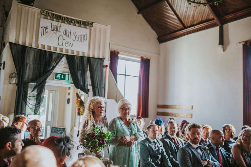 As soon as they got engaged, Morgan and Sam decided that a Halloween wedding would be their absolute dream. They wanted to include the dark horror side and also the warm coloured, Autumnal side of Halloween. The wedding was held atĀ Reynoldston Village Hall on October 31st.