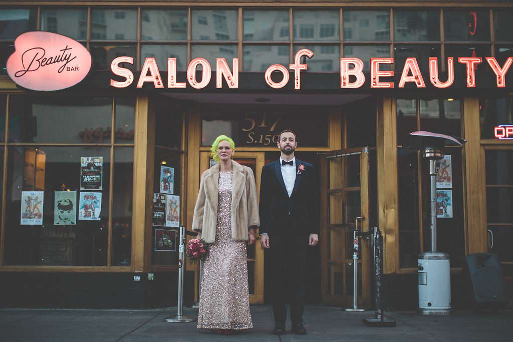“When you elope, the theme kind of just becomes ‘you two'”, said Katie. “Our day was very us – full of colour, laughter and love! When you plan everything so quickly the internet is a wonderful thing. I used Google, Pinterest, Yelp and Rock n Roll Bride to help us find vendors in Las Vegas, a city we are not native to. I made a ton of phone calls and emailed so many people in the days leading up to our big day.”