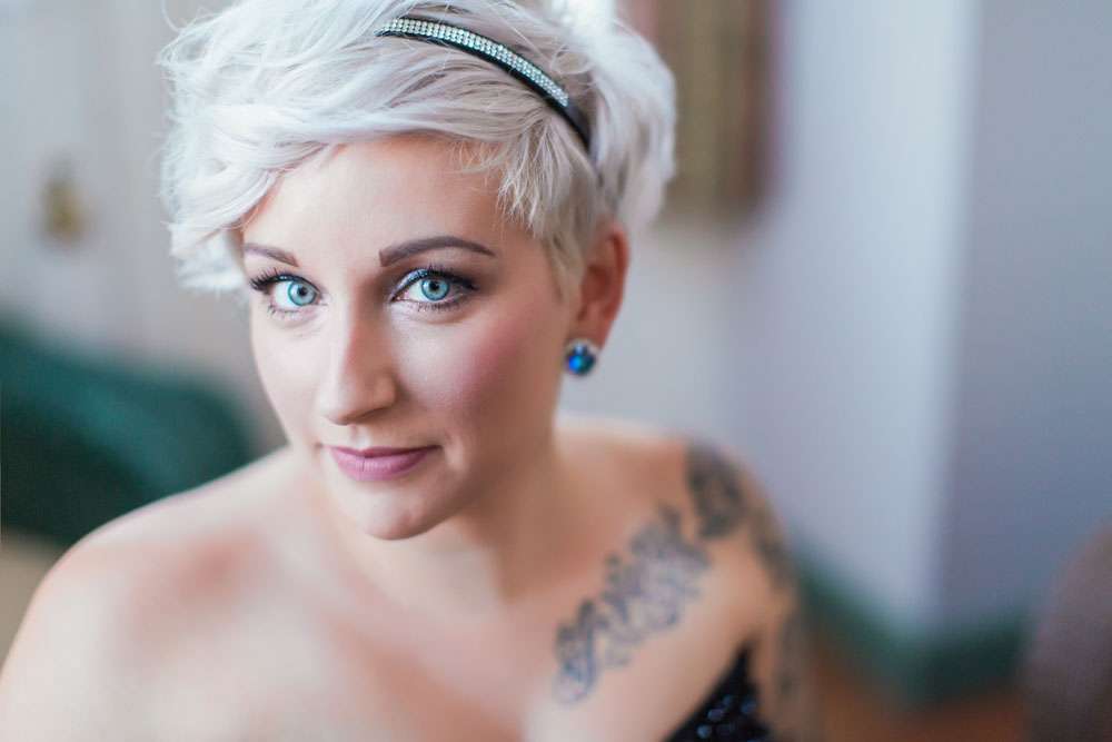 The bride opted for a black evening gown from Sherri Hill instead of a traditional white dress. “I tried to find black wedding gowns but no one carries them in stock and it’s hard to try on something white and imagine it, yuck! At least buying an evening gown came at a severely discounted price ($480 if I remember correctly). My shoes were grey velvet brocade Doc Martens that I found on Amazon, three days before the wedding! I also wore a cute $5 headband I found at the mall (no shame in my thrift game). We didn’t have any flowers in the wedding and I made my own bouquet and the centrepieces with fake flowers from Michael’s and craft stores.”