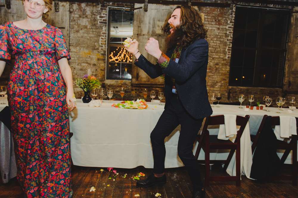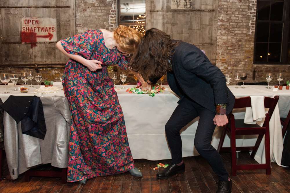 The cold weather outside didn’t stop Kathryn and Jeff opting for a sunny, colourful wedding when they married in February. The big day was held at Greenpoint Loft in Brooklyn. “Colour, being true ourselves, our personal tastes and great food were our guiding values”, said the bride.