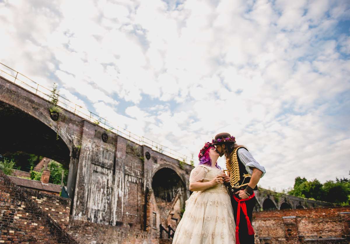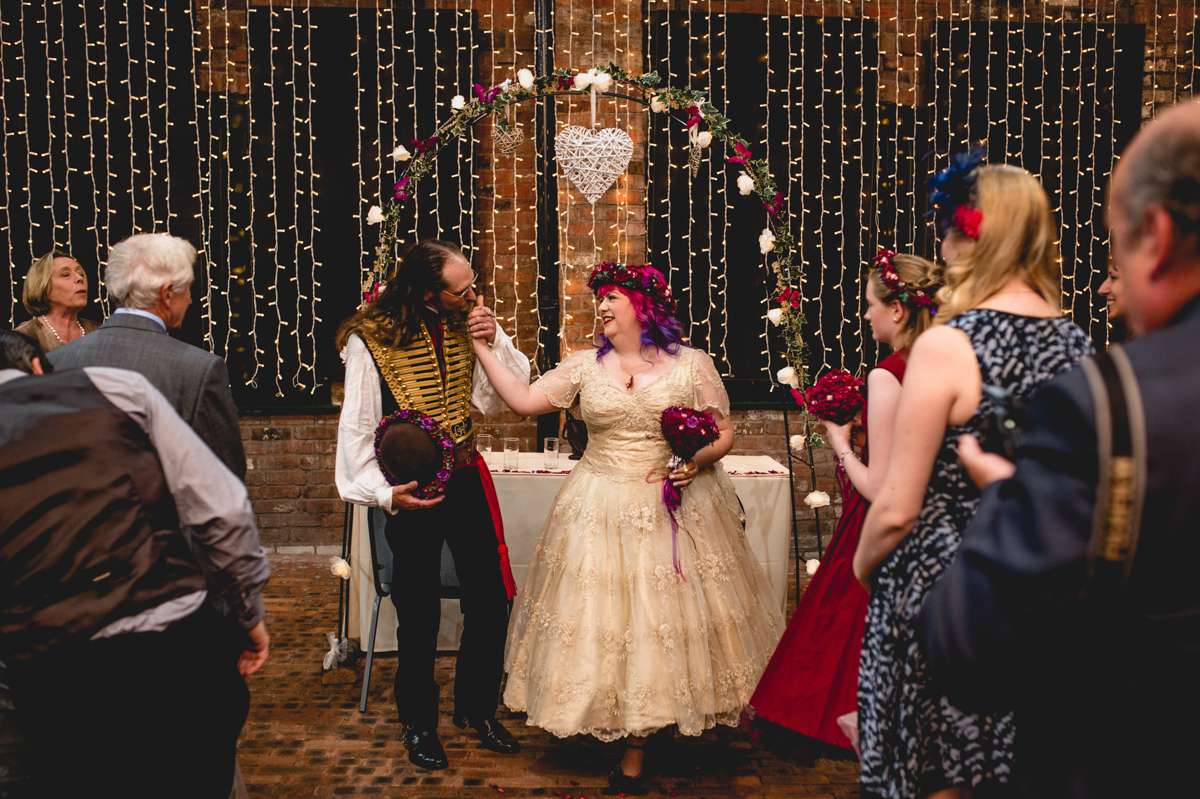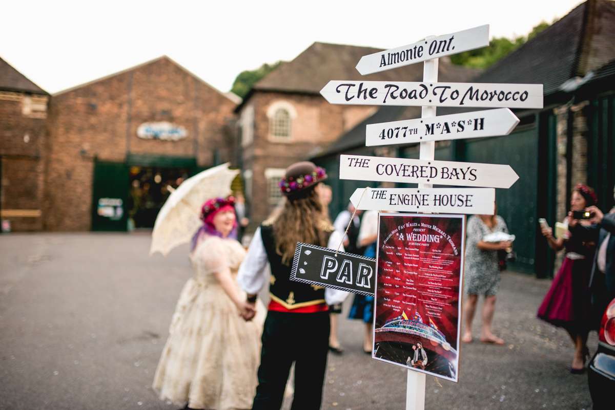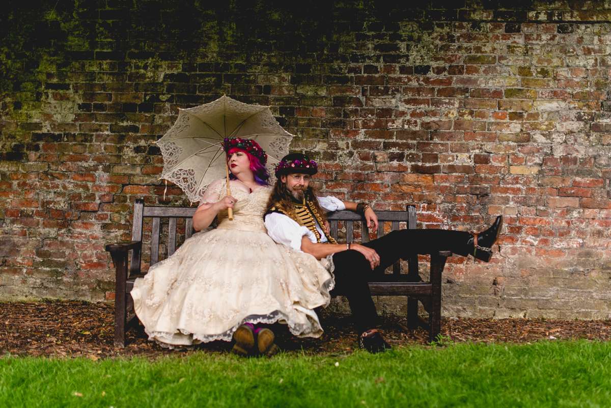 “We were inspired by everything we loved, ranging from Tim Burton’s Corpse Bride to vintage circus’ with hot air balloons”, Fay explained. “As reenactors we spend a lot of time during the summer camping in fields, fighting on battlefields and then socialising with friends in the beer tent. We wanted to share the atmosphere and feelings we get at reenactment shows with all our friends and family. We didn’t want to be constrained with a ‘reenactment wedding’ though, so we decided to bring lots of things we loved into the day.”
