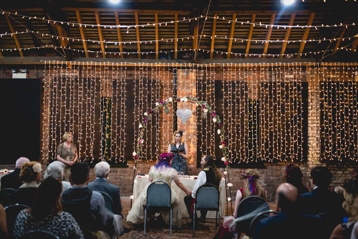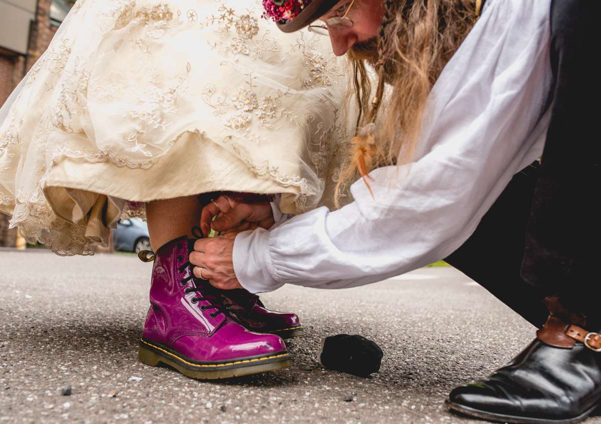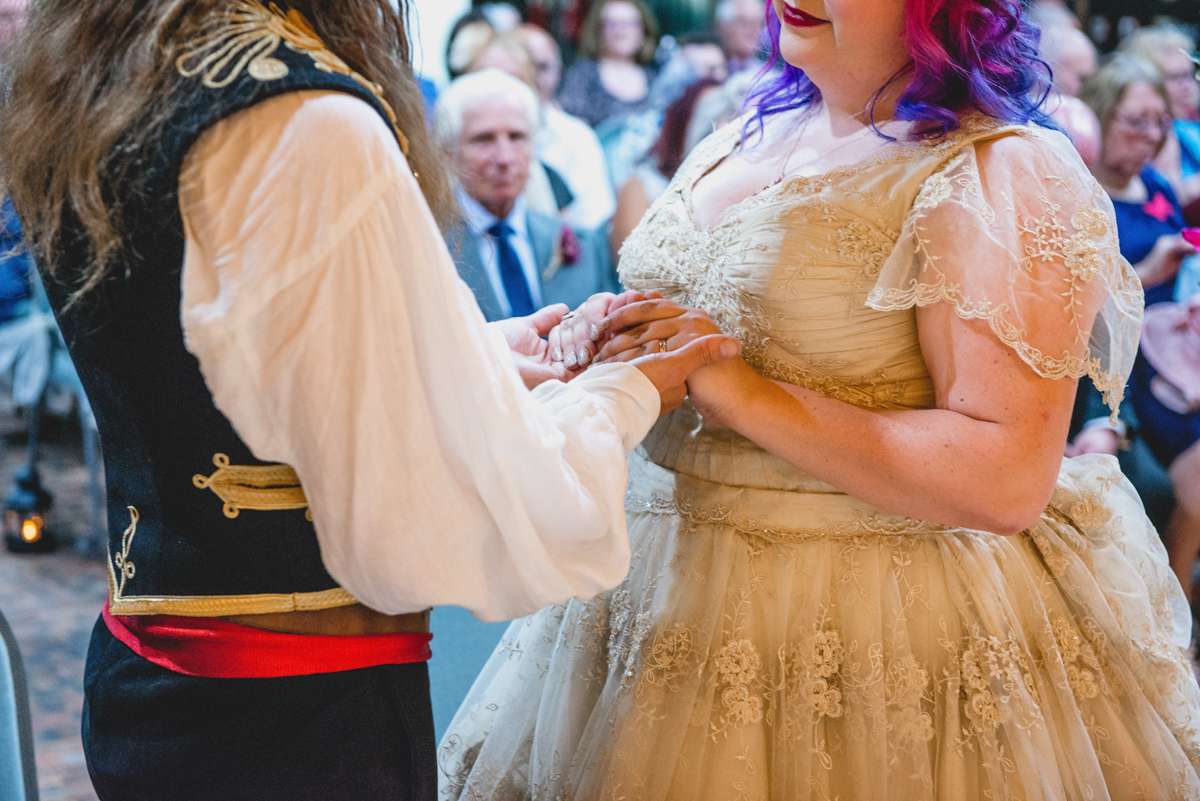 “We were inspired by everything we loved, ranging from Tim Burton’s Corpse Bride to vintage circus’ with hot air balloons”, Fay explained. “As reenactors we spend a lot of time during the summer camping in fields, fighting on battlefields and then socialising with friends in the beer tent. We wanted to share the atmosphere and feelings we get at reenactment shows with all our friends and family. We didn’t want to be constrained with a ‘reenactment wedding’ though, so we decided to bring lots of things we loved into the day.”