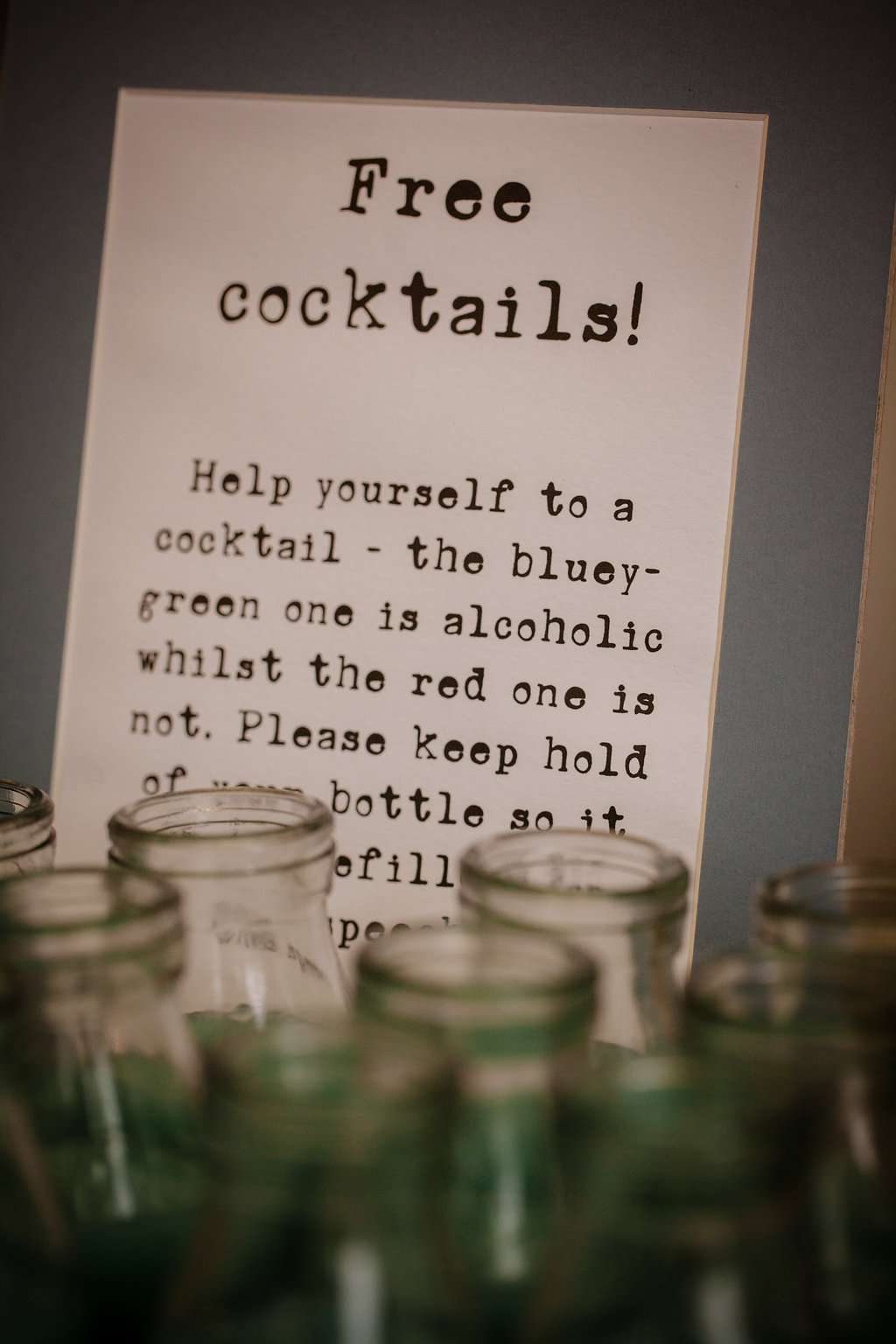 “We’d decided we weren’t going to put champagne on the tables for the speeches as we both hate it!” she laughed. “Originally we were just going to give people vouchers for the bar to get what they wanted, but then our caterer pointed out that this would cause a rush on the bar and it wouldn’t be possible to get that many people served in a short space of time. So we decided to make our own cocktails, which we put out in jugs on the tables just before the speeches. The whole thing worked really well, although we *might* have made the alcoholic ones a bit stronger than intended!”