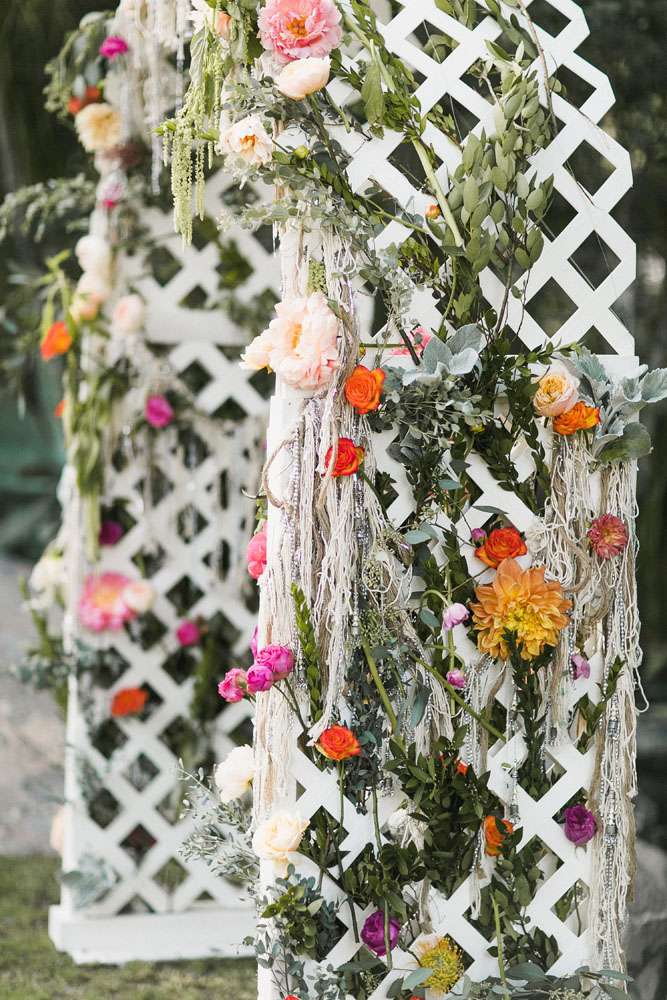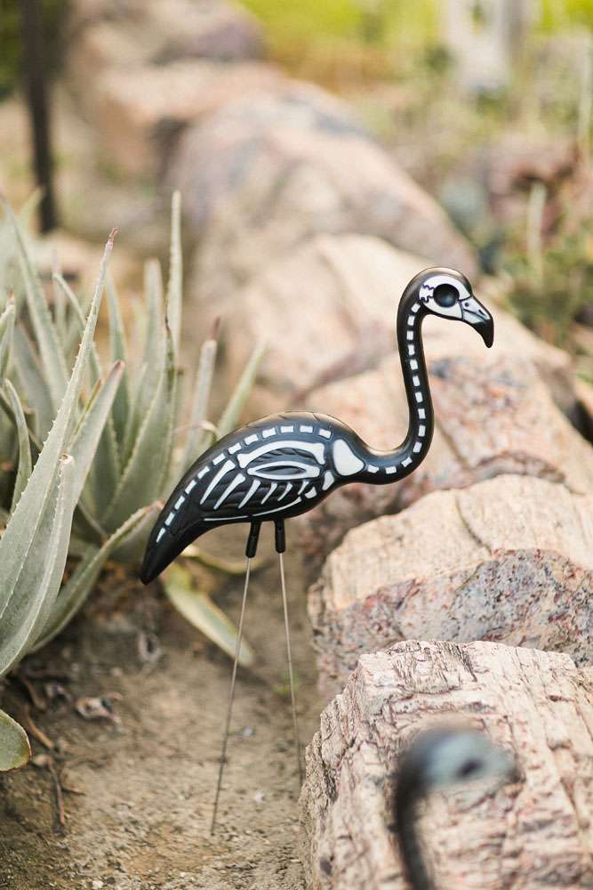 Courtney and Sanford met at work ten years ago when Sanford came in to cover a shift. They were both wearing the same black women’s jeans and spent the whole time shamelessly flirting and laughing together. During their decade long romance they lived in different places (him in Arizona and her in Southern California) so would often meet up halfway in Palm Springs. When they came to planning their wedding they knew it had to happen there. Their theme was a groovy Palm Springs, classic rock, boho and Halloween mash up!