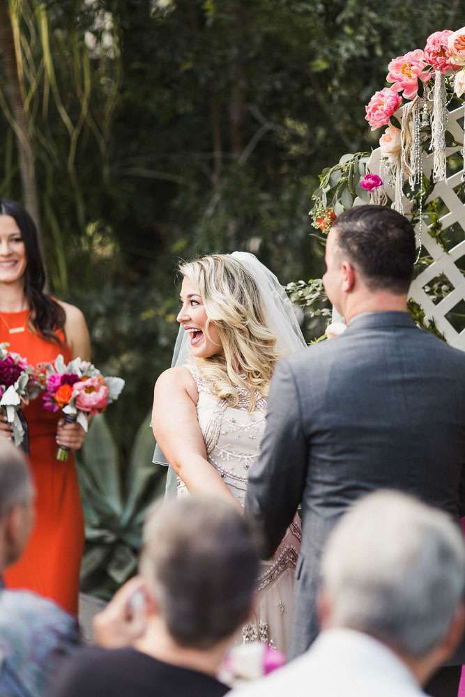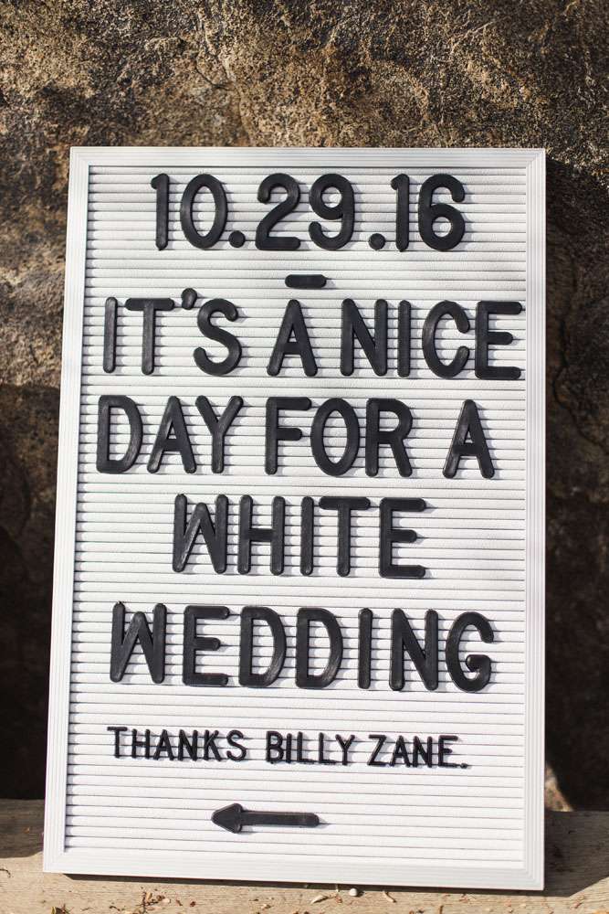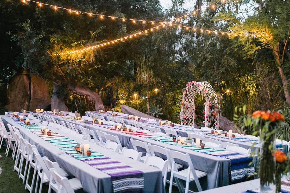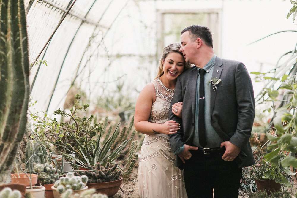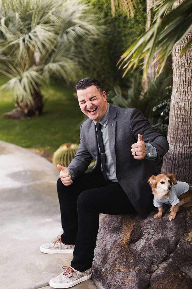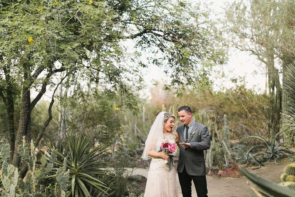 “We have six awesome and very different parents and we wanted them all to feel a warm welcome and be included in our big day even though they are not necessarily best friends. We also wanted activities like our photo booth bus and tour of the cactus garden to give our guests ways to connect with and get to know each other. We included our dog Kingsley (complete with his own chambray shirt) in the ceremony and included our friends in as many elements as we could. We also encouraged them to wear jeans and we skipped most of the traditional elements of what society says a wedding needs to be.”