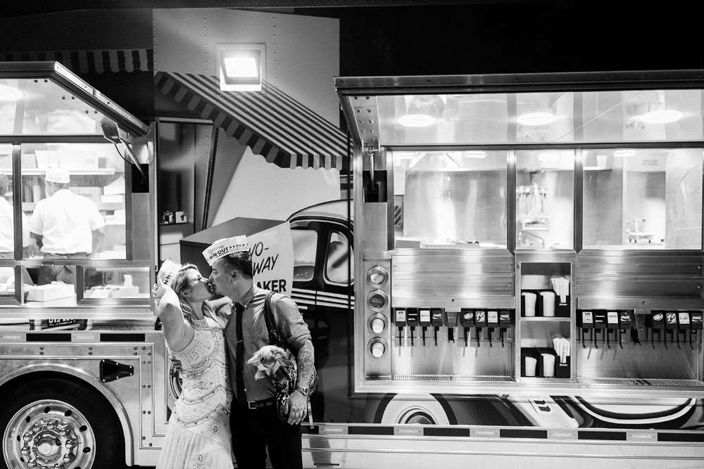 Their biggest expenses were their photographer and the food truck. “It was so cute that we thought we could cheat the system and have this wildly inexpensive DIY wedding”, she said. “We were frugal in some elements but we really had to have our amazing photographer Jackie Wonders and the In N Out truck… Amazingly good junk food and photos made the day! Neither were very expensive, but they were definitely our top expenses.”