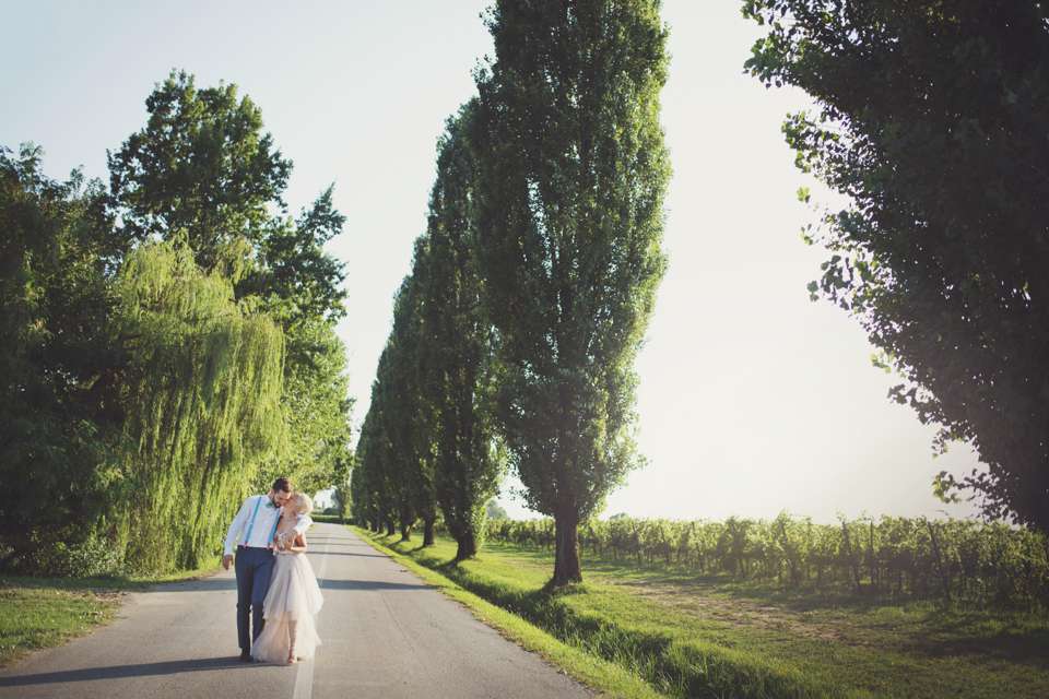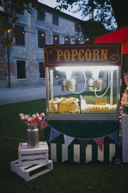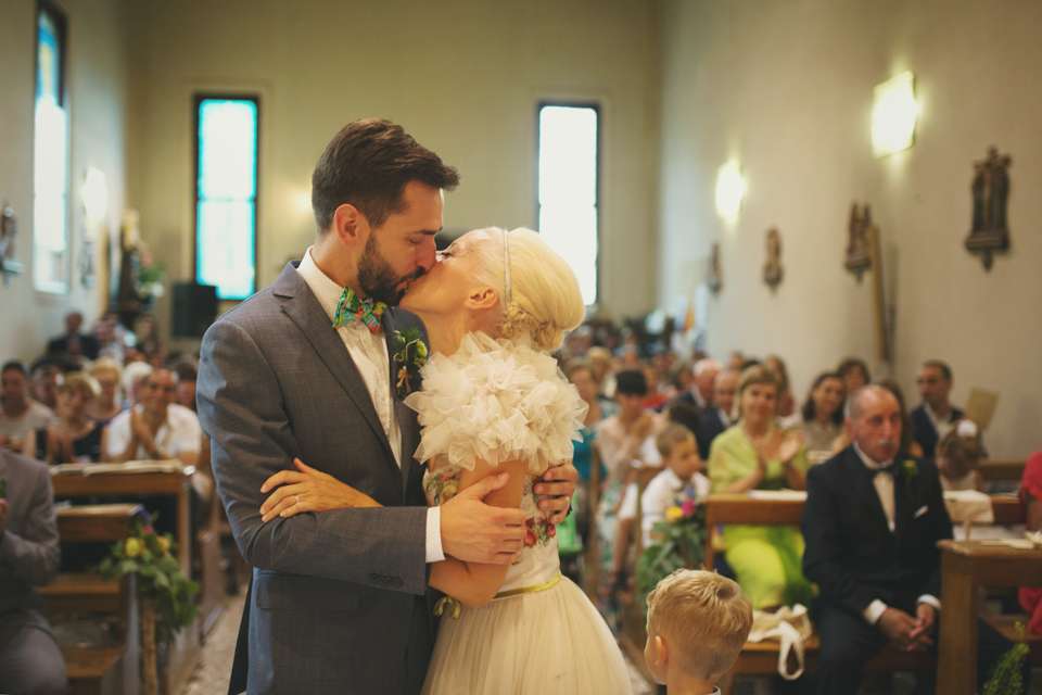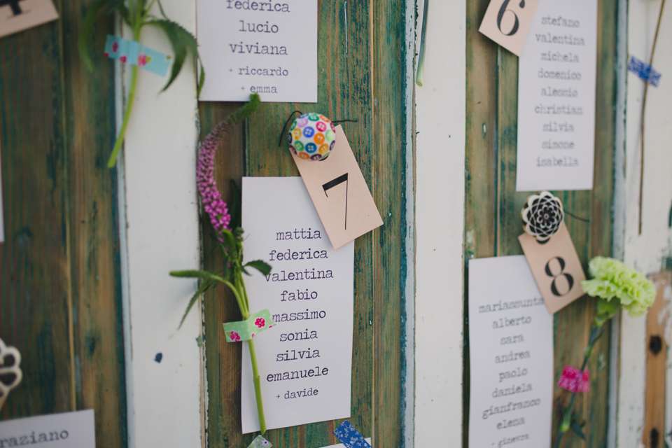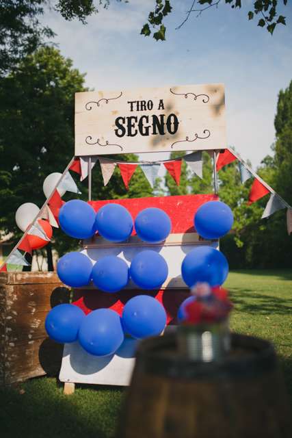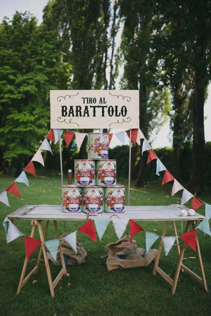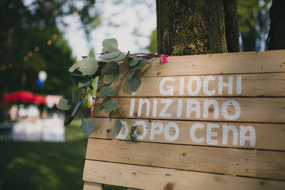 Elisa and Stefano wanted their wedding to be a party with old-style animated games for both adults and children. They were inspired by the idea of a village carnival with lights, flags and a band playing popular music.