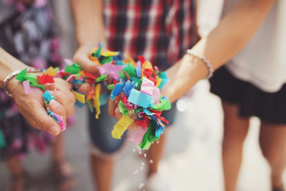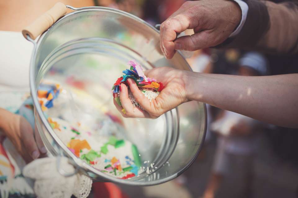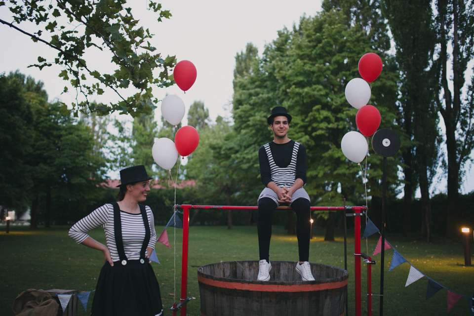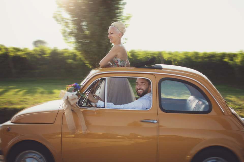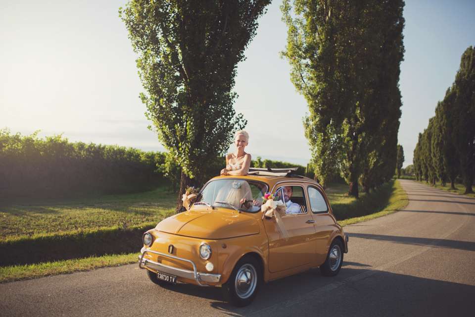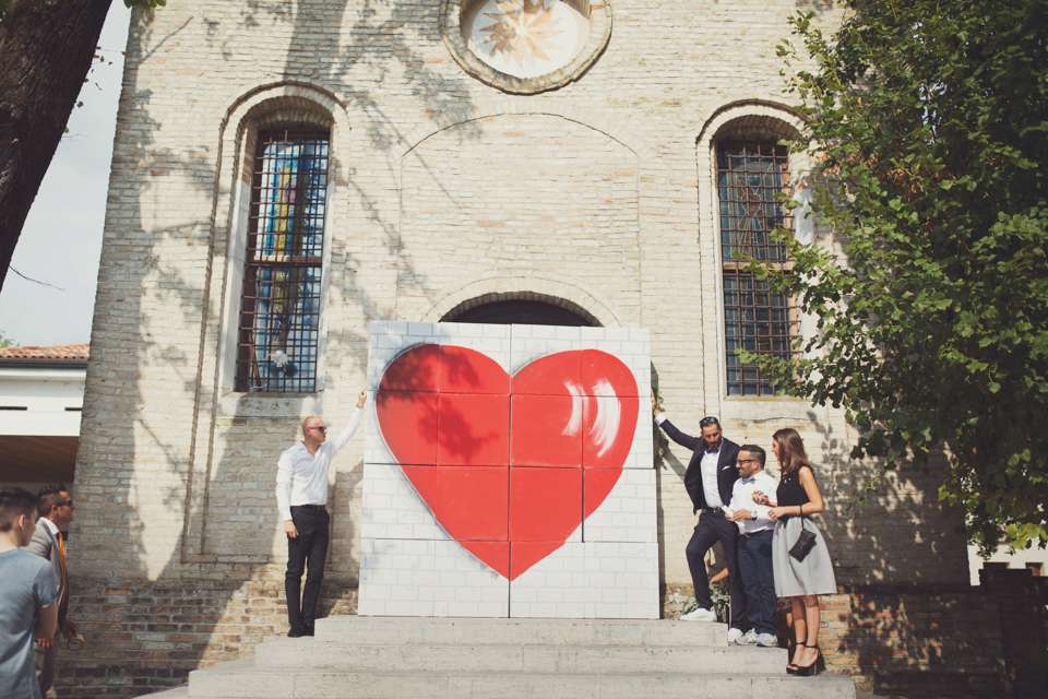 Elisa and Stefano wanted their wedding to be a party with old-style animated games for both adults and children. They were inspired by the idea of a village carnival with lights, flags and a band playing popular music.