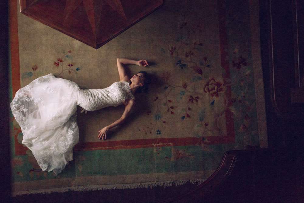 The bride (a model) and the groom (a photographer) had grand plans for their wedding shoot. They didn’t have their small wedding in China photographed professionally so they wanted something spectacular for these shots. “Jake and I are both creatives, we love looking at aesthetically pleasing and intriguing images, so we went with our photographer, Wayne, who can create something different in-camera and a strong style. I was definitely hoping for something bit more ‘editorial’ with these photos and I think we achieved that. We hope our photos inspire other couples to not be afraid to do something out of the box and/or editorial if you’re wearing something traditional.”