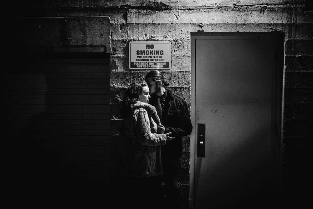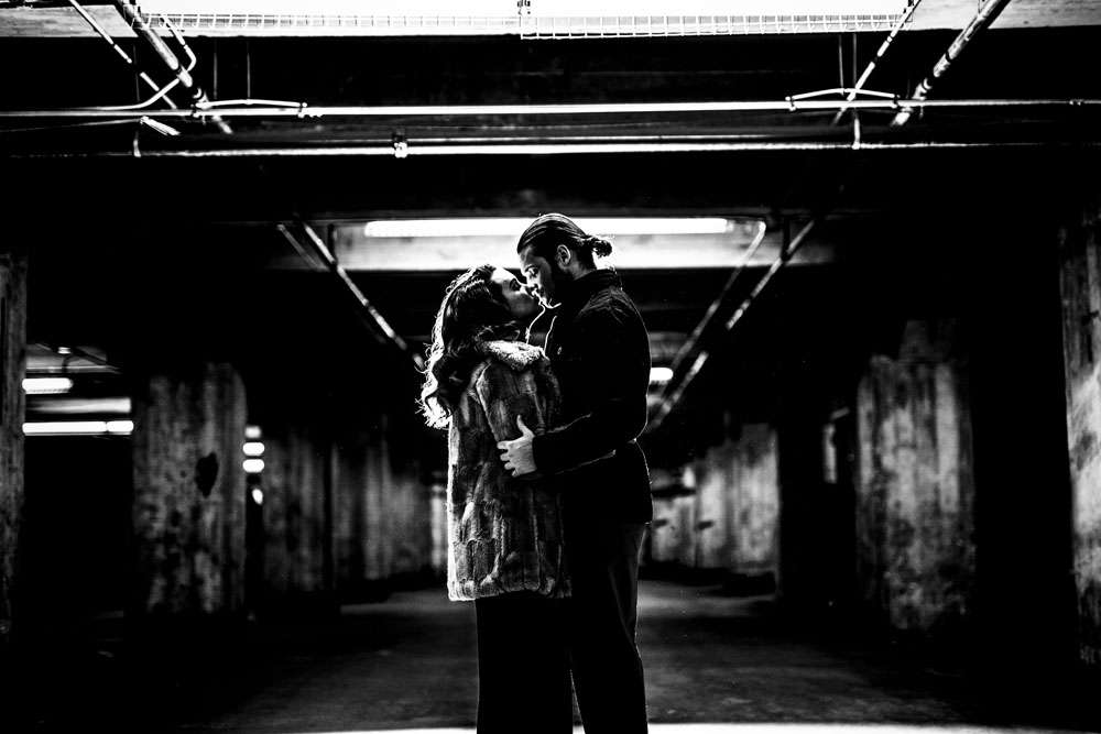 “I’m actually the one who suggested Sin city theme to create a different twist on urban engagement sessions and they loved the idea. I thought the urban textures, the fog breath brought by winter chills and the intimate indoor sessions completely defined their characters and the city they live in. A Sin City theme was perfect to put an extra spin on it too.”