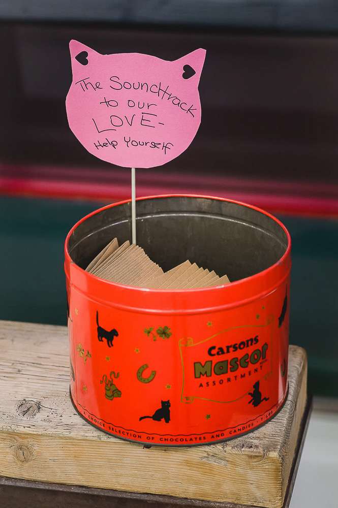 “Our theme was cats, cats, and more cats!” Ruby laughed. “We love cats and love people who love cats (and those who don’t also of course, but who on earth doesn’t love cats?!) The funny thing was we weren’t going to have a theme at first, we just wanted nice bright colours and lots of home made stuff. Ashra, my maid of honour, had made our save the dates which included a really sweet illustration of the two of us and on the illustration I was wearing a flower headband with cats poking out. After we sent them out, Lukasz’s mother called saying ‘Are you having a cat themed wedding? That’s crazy! You can’t!’ so we said well we weren’t going to but now you’ve mentioned it we HAVE to! We got our fur babies Donkey and Donut, Scottish Fold kittens, in July and we knew that from then on it had to be cat everything!”