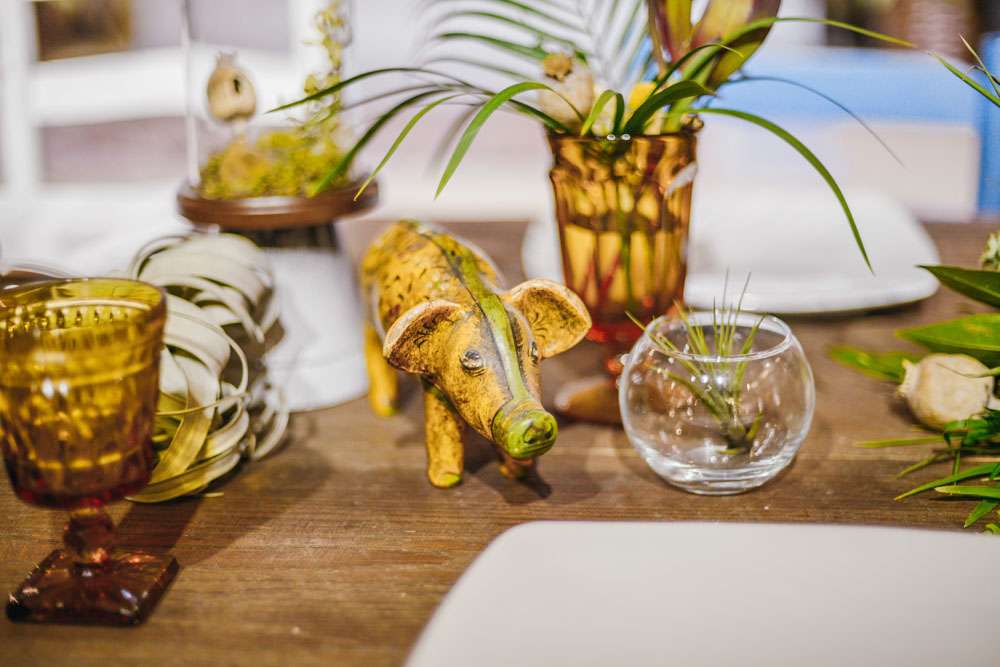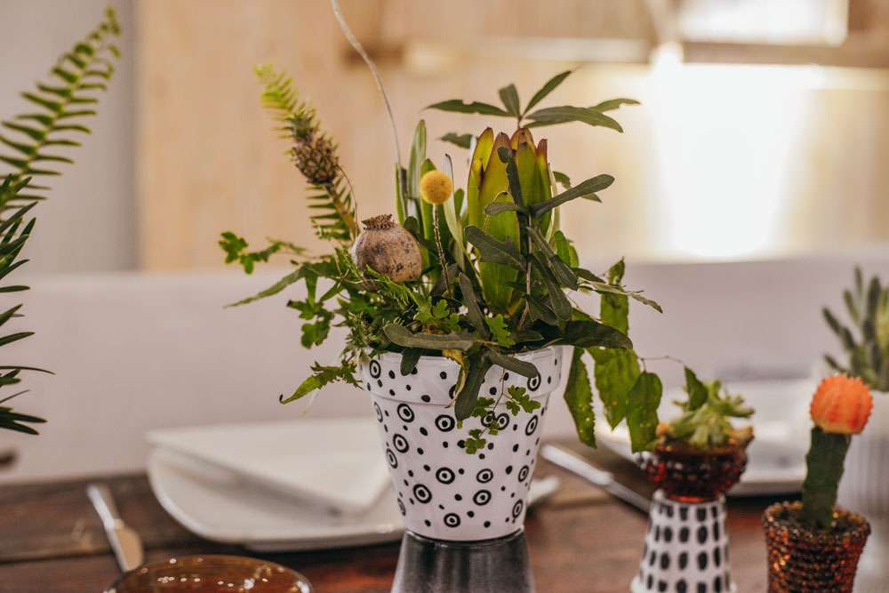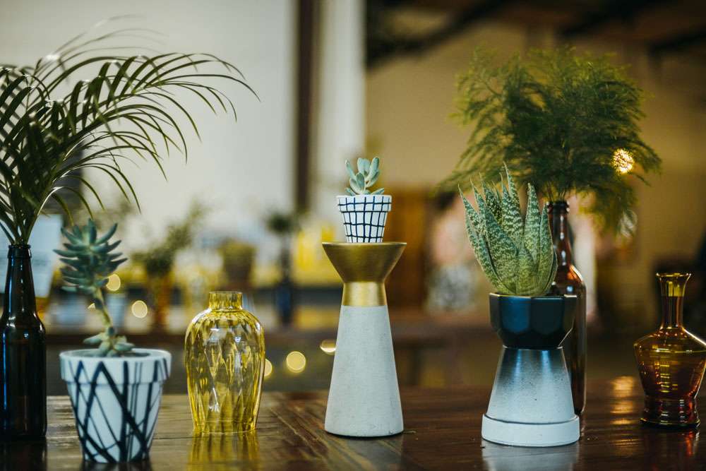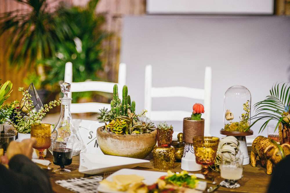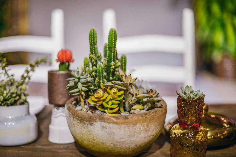 In a similar vein to this, the decor at the wedding wasn’t to be super girly either. They used succulents and cacti instead of flowers and lots of black and white. “We went a little crazy with the décor and props!” she laughed. “I LOVE succulents and I’m not a big flower person so we asked Ivory & Beau to use mainly succulents, cacti, and similar plants to decorate the wedding and to create my bouquet. We also had lots of black and white hand painted pots for the plants that that I painted with my parents. Many of the plants were in little glass terrariums as well.”