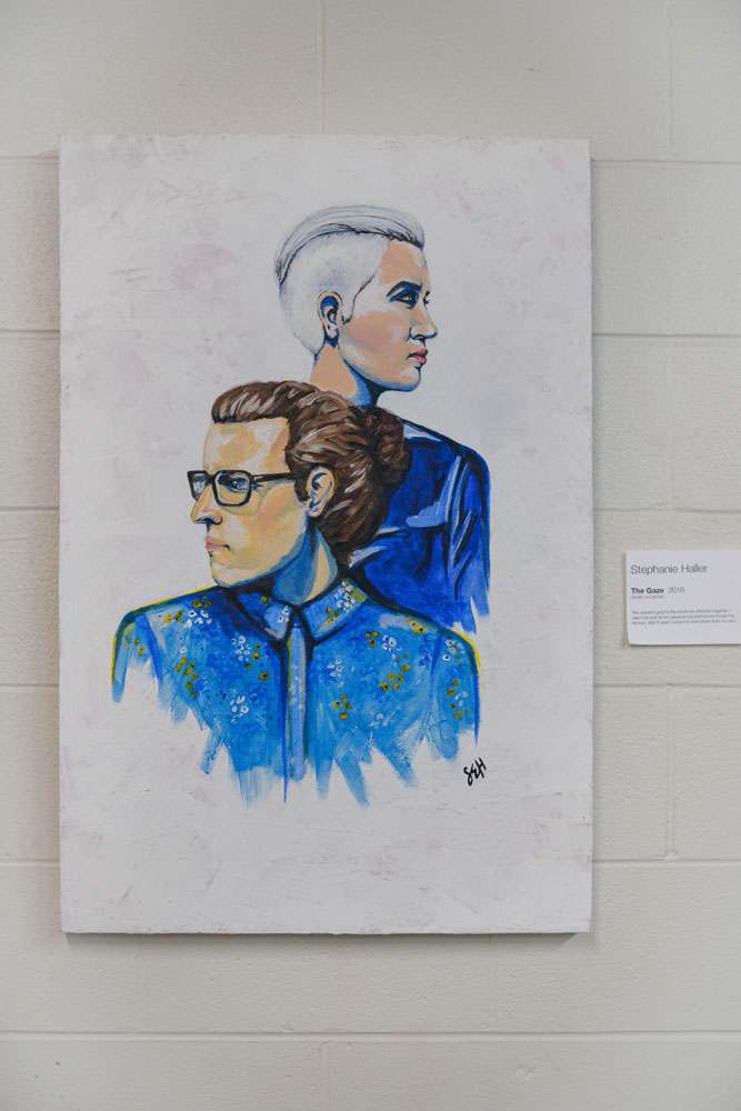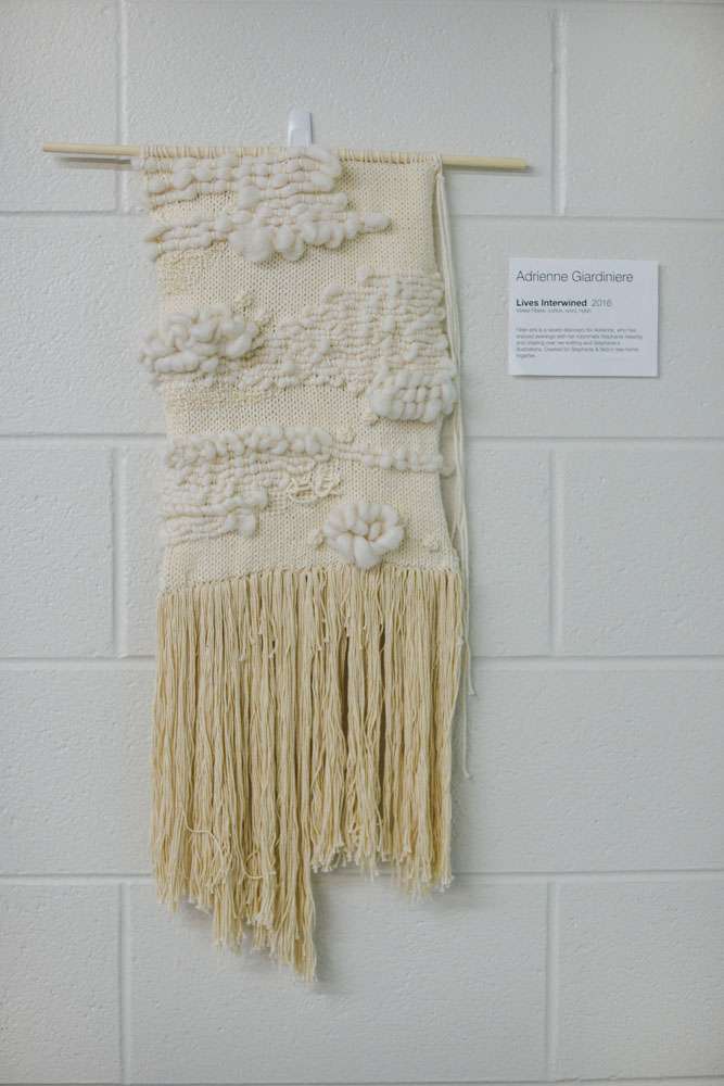 “However one of the best parts about our wedding was the wedding gallery we had set up of artwork that we had commissioned from our friends. This was set up like a real gallery with descriptions of each piece and benches in the middle. We went to art school and we have a lot of very talented friends and family and we wanted to figure out a way to include them in our day. As we have said community is very important to us so we wanted to demonstrate that. The idea came to us to ask our friends to create a piece of art that represents our relationship and many of our friends agreed happily.”