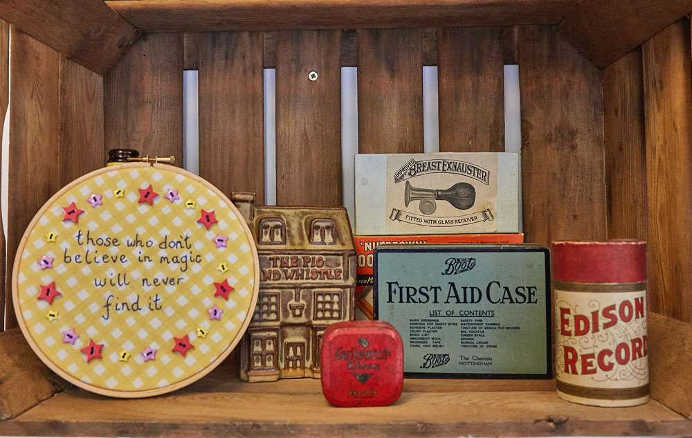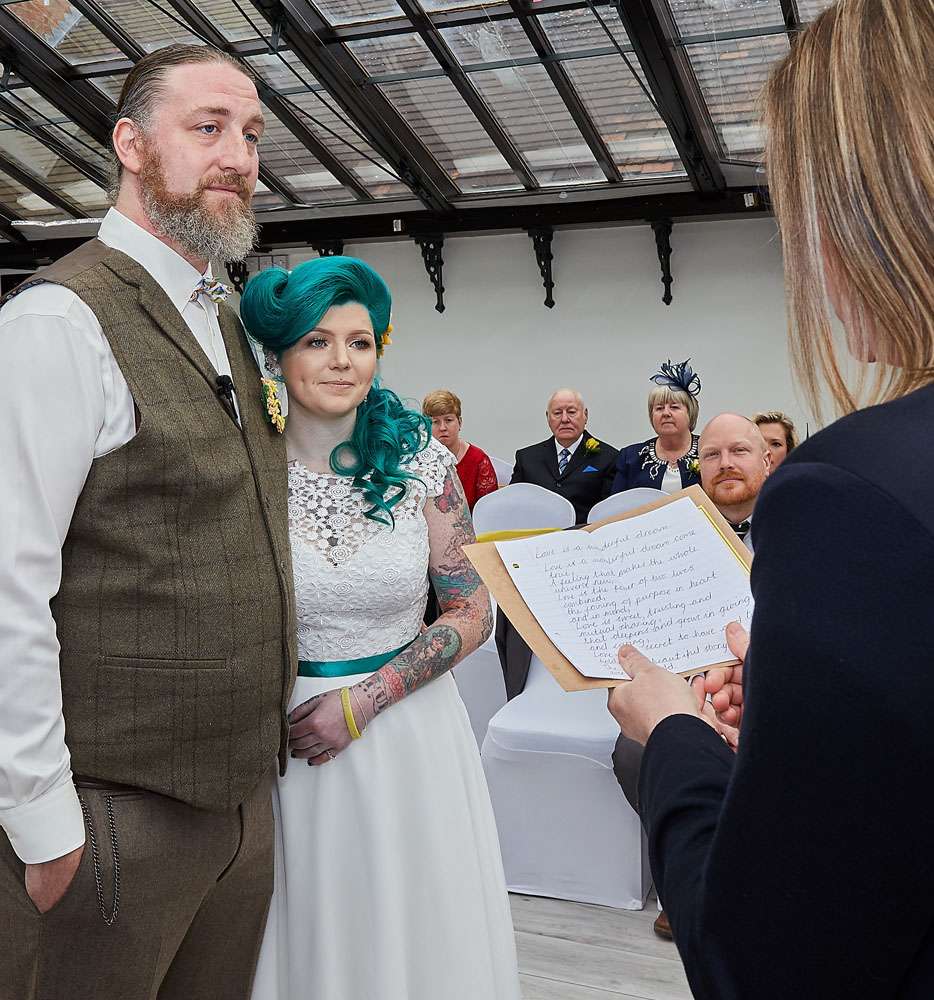 “We both love vintage styling,” began Emma, “and I particularly love vintage clothes and shoes. We both collect antique curios and oddities. The hot air balloon aspect is in reference to our late son, seeing them as a link to the skies. The rainbows developed naturally through the multi-colour of the air balloons and also linked into our rainbow baby, Eric. Almost every guest commented on the uniqueness of having it all DIY and what a showing of our personalities it was. We wanted to incorporate different aspects of our personalities everywhere so we had little glints of different things throughout the day. For instance, we are both really into history so the table names were historical characters.”