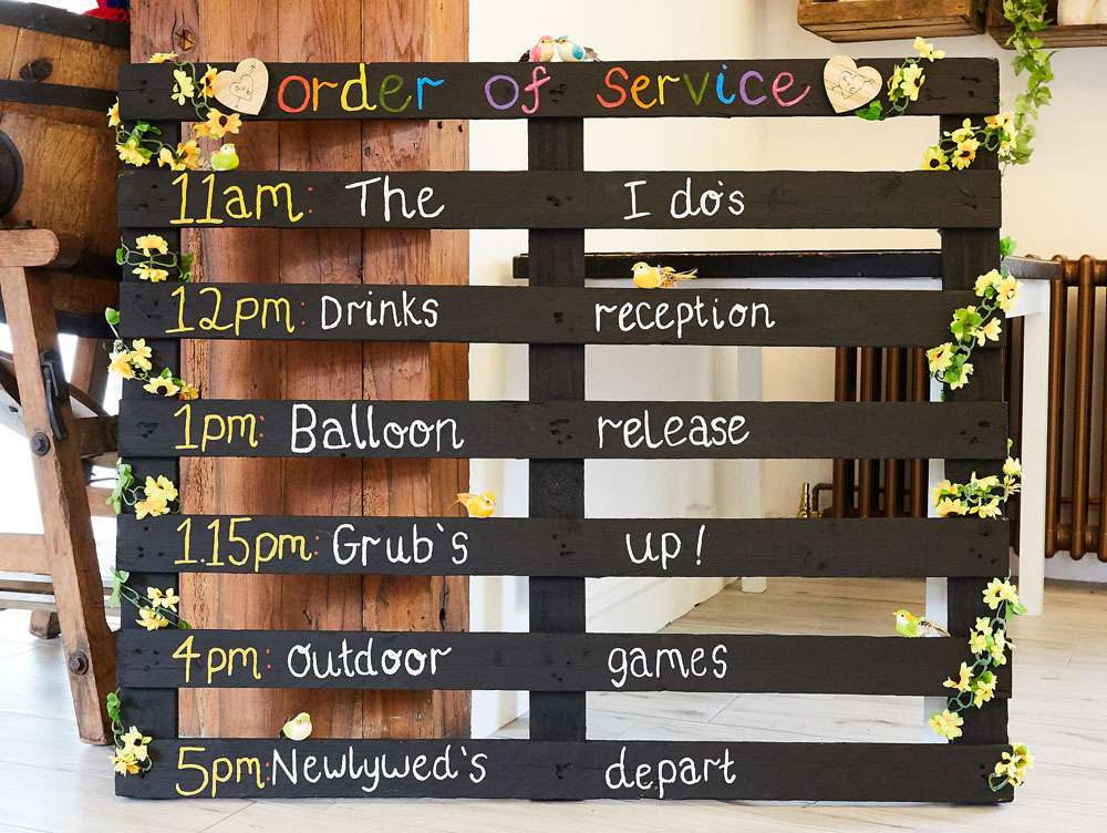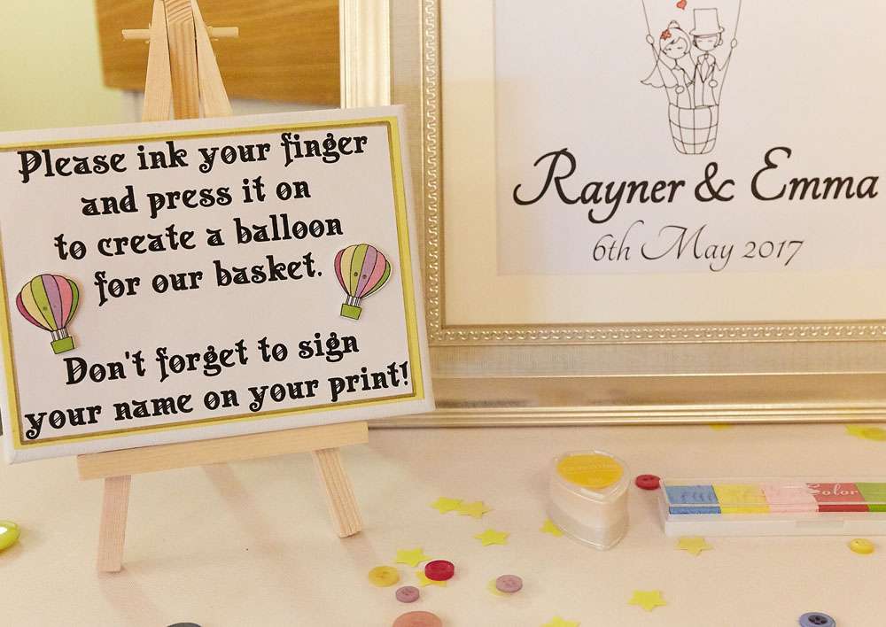 Their vast range of activities included outdoor games, leaving messages for the bride and groom, and an I Spy game with prizes. “The wedding was mainly outdoors and we had a range of outdoor games like quoits, basketball and giant connect four. We had two tables with activities on, including a thumbprint guestbook made to look like balloons floating a hot air basket, a teapot with notelets for people to write us messages for us to read on our first anniversary and advice cards with spaces for a little doodle of the writer. This proved to be hilarious when we read them back! We had ‘I Spy’ cards was a game with lists of things for people to photograph and prizes for the best entries.”
