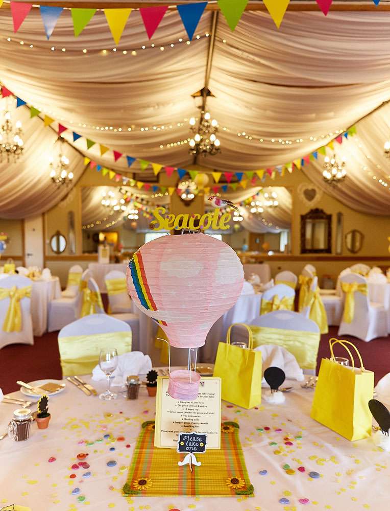 Emma and Rayner’s wedding theme started out as ‘vintage sunflowers and hot air balloons’, which quickly expanded to include rainbows too. The whole wedding was DIY and was full of activities for their guests and little nods to all the different things they both love.