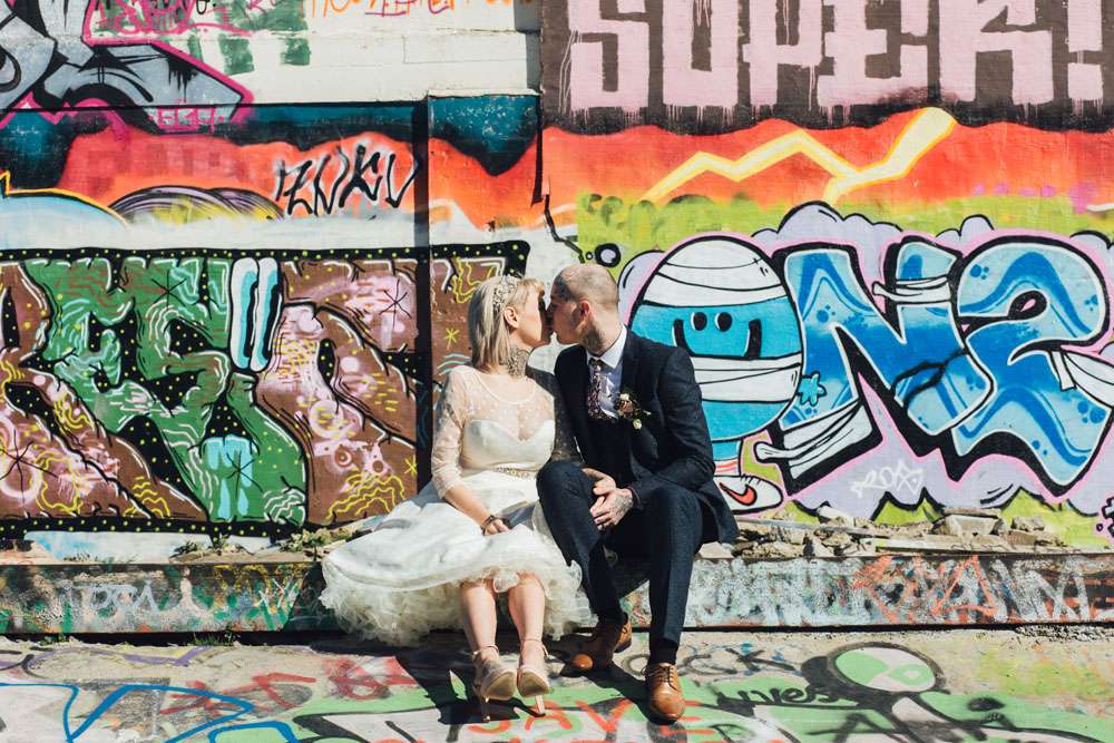 When a bride and groom meet at a tattoo studio, you just know that’s going to become part of their wedding too! Sadie and Ped met when she booked him to do her first big tattoo. They were married in March and wanted their wedding to be like their best day out out together. That meant a ceremony with just the two of them, good food and getting inked!