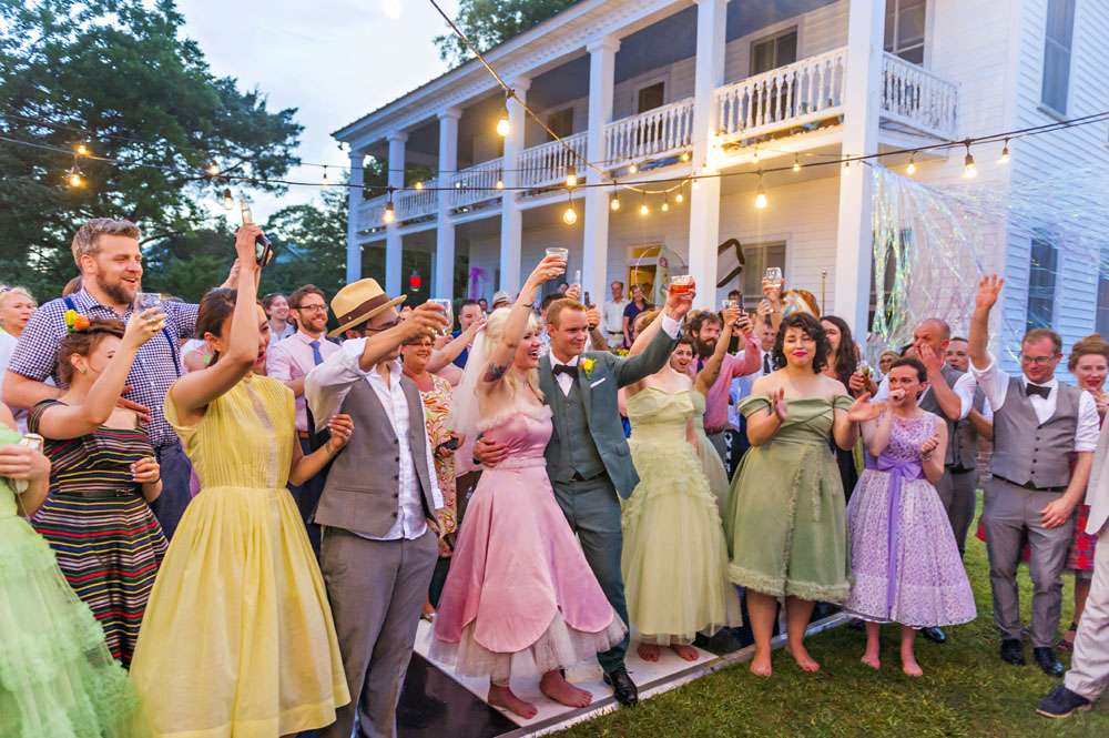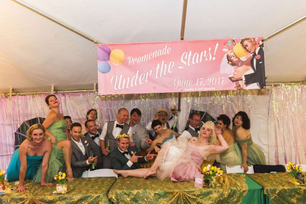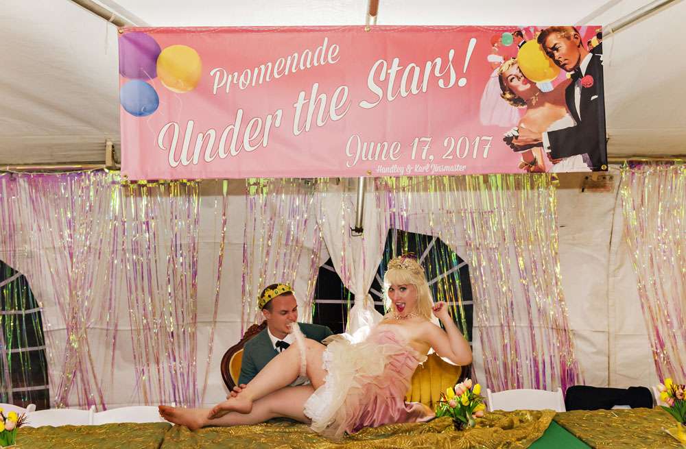 Handley and Karl had a vintage wedding, and the details were perfectly authentic. From the bridesmaids vintage dresses, the stationery from the 1960s and all the retro knick knacks and props, they wanted to be crowned Prom King and Queen.