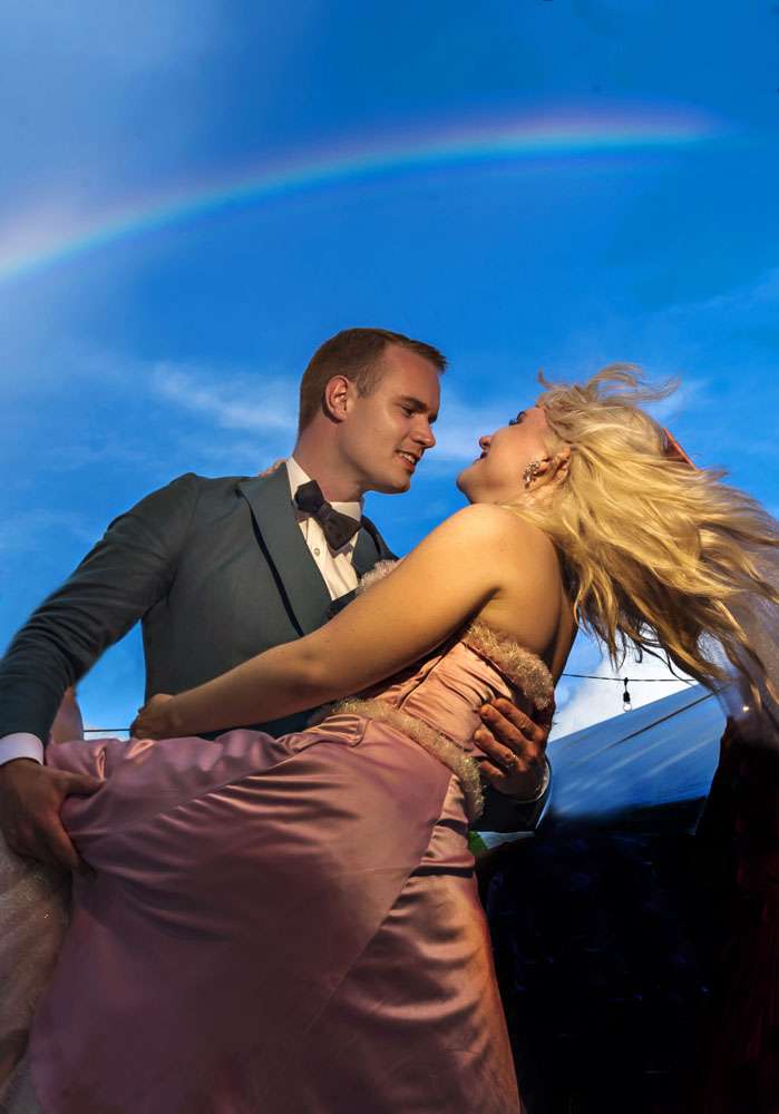 “Our wedding was a a 1950s prom, because tinsel and puffy dresses are what dreams are made of!” the bride began. “Plus, we got to fulfil our dream of being crowned Prom King and Prom Queen!”