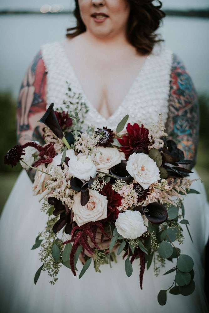 “For inspiration I looked through all the wedding websites at Fall weddings. In the end, I relied on decor and ideas I had thought of along the way – I just wanted a bad ass, Rock n Roll glam wedding!”