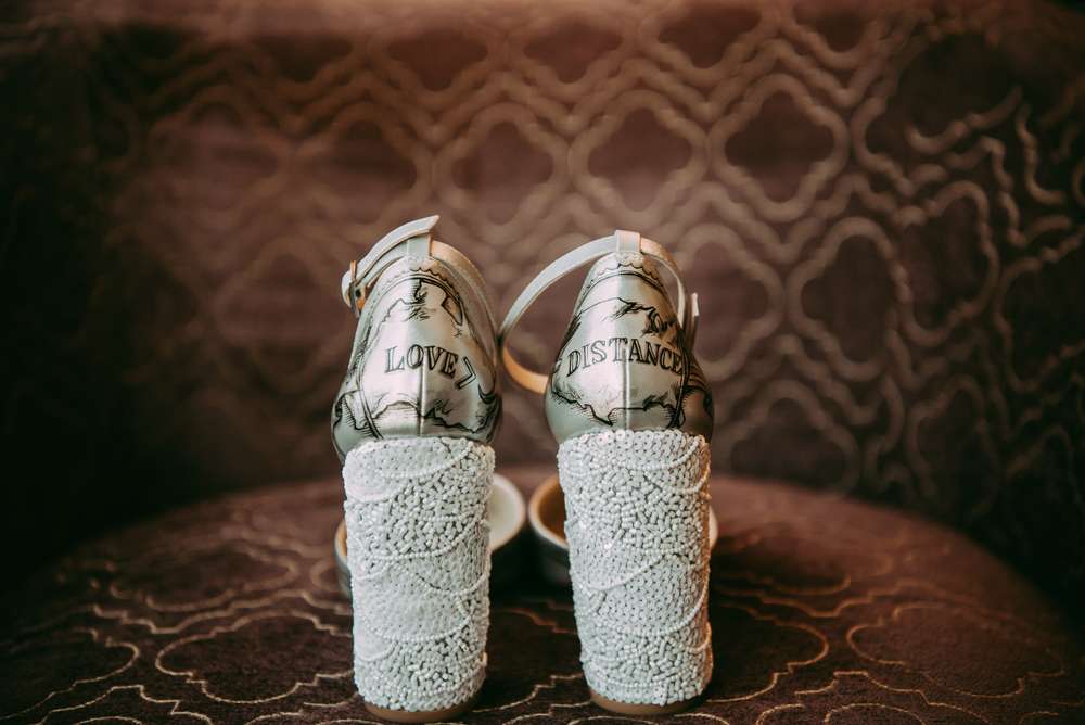 “The inspiration for our wedding was everything that we love,” explained Heather. “We are foodies and my favourite food is tacos, hence our reception at the two story Taco Bell Cantina/Club on the strip! We had accessories with touches of characters we love such as Harley Quinn, the Joker and Batman. We got matching tattoos to commemorate our special day and I carried a paper flower bouquet which was custom created to tell our love story. Each flower was made of paper that has some significance; my favourite bible verse, lyrics from the song I walked down the aisle too, our country’s flags, Batman and Joker comic book, Wonder Woman comic book, Star Wars characters, a ‘junk food’ flower (that had tacos, pizza, burgers, and fries on it), and flowers made of maps of important locations to us. My bouquet is my most favourite accessory from the whole day!”