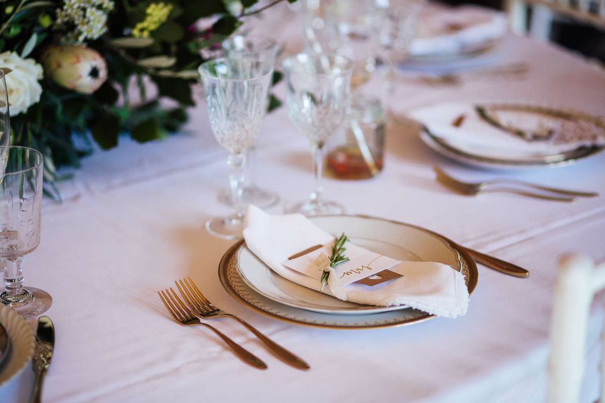 “Our wedding ceremony was just so beautiful. Even more beautiful than I could ever of planned. The sky was so blue and the sun was shinning from the moment I opened my eyes. We had an outside ceremony with no plan b so someone was on our side that day. My aunt had roses planted in the courtyard which was directly In front of where we said our vows. We had 24 rows of chairs to seat all 120 of our guest and an aisle made from of Persian rugs which were hired from penny at The Little Lending Company. We kept the ceremony short and sweet because, let’s face it, no one goes to a wedding for the soppy stuff they go to get smashed!”