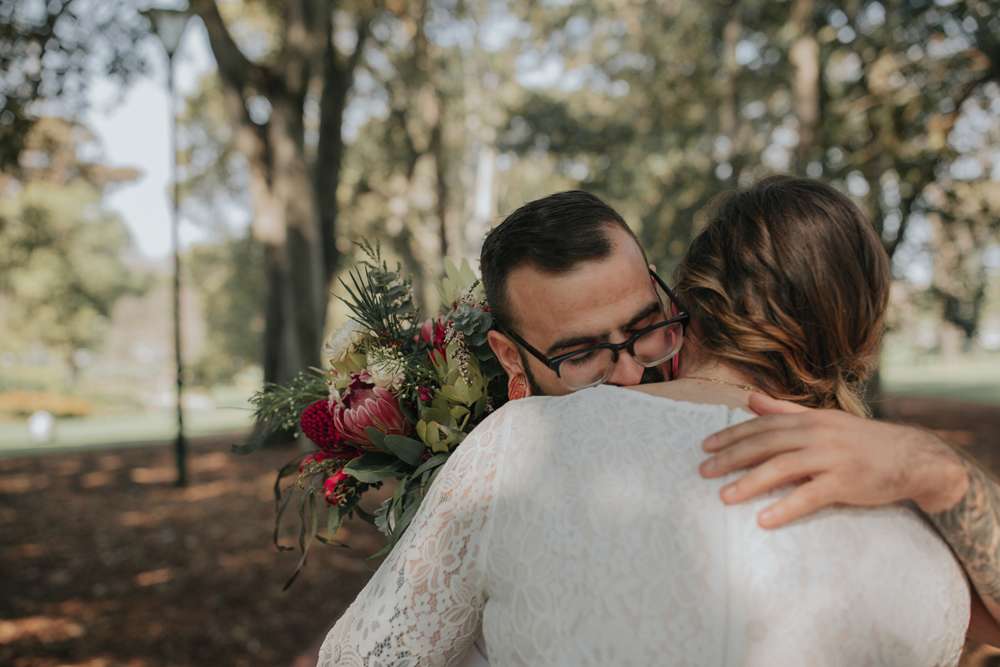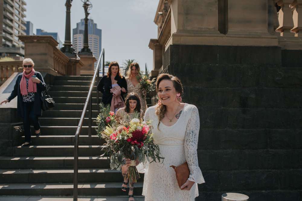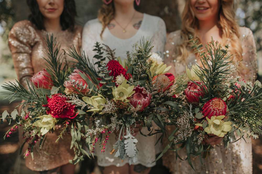 Jemima had decided to make her own bouquet with fresh flowers, but this didn’t turn out to be as simple as she’d hoped, “My friend Jenny and I woke up at 3.30am the morning before the wedding to head to the flower markets to buy our flowers wholesale so we could DIY our bouquets and all the arrangements. Turns out the Melbourne flower markets aren’t open to the public and it began a frantic morning of running around to a different market! Luckily we found exactly what we needed to put everything together.”