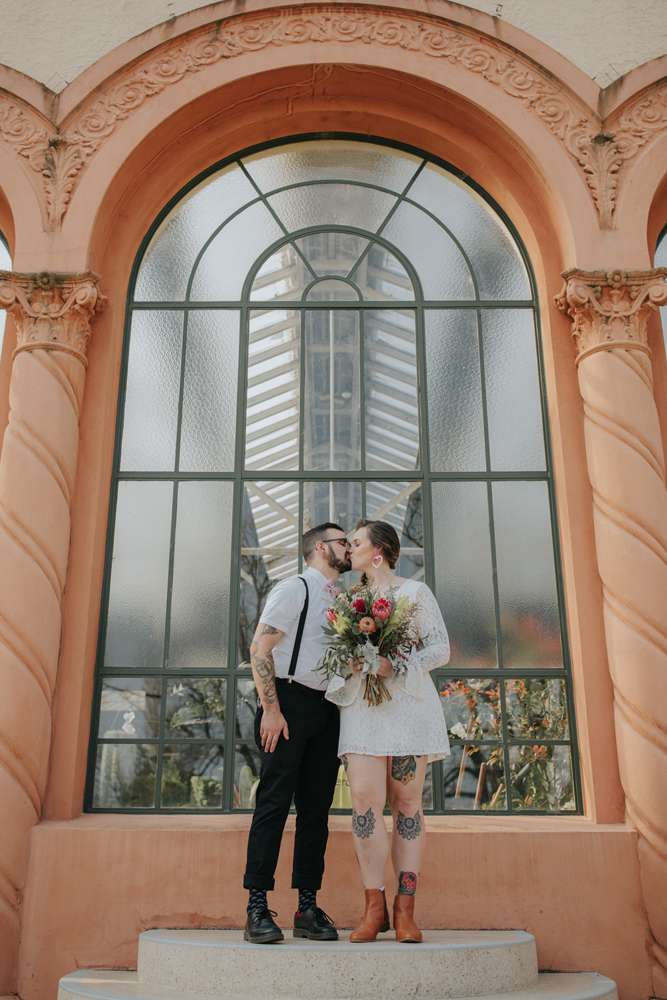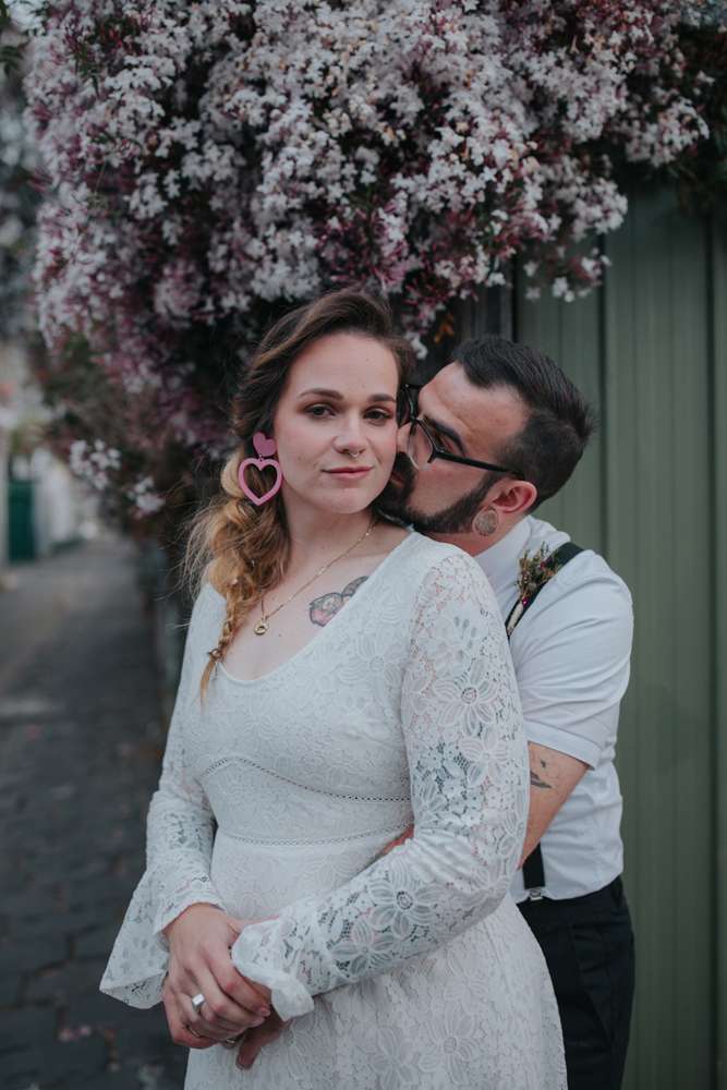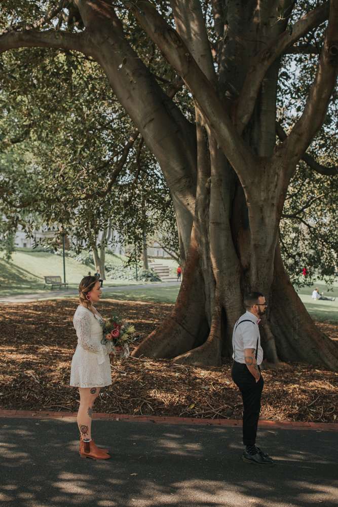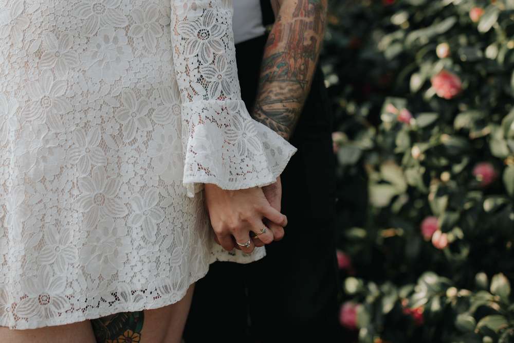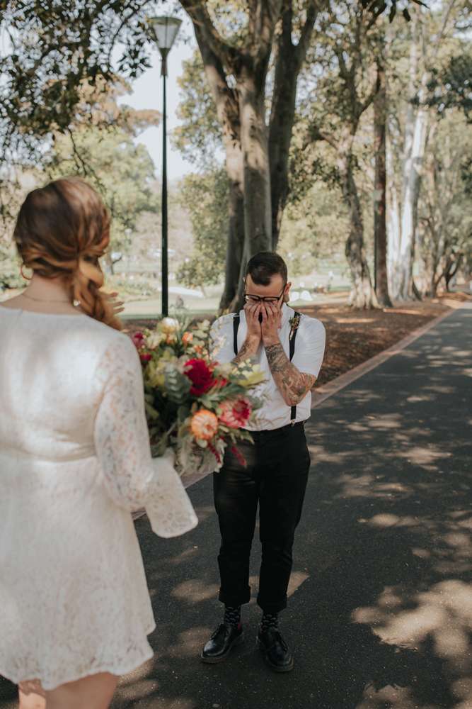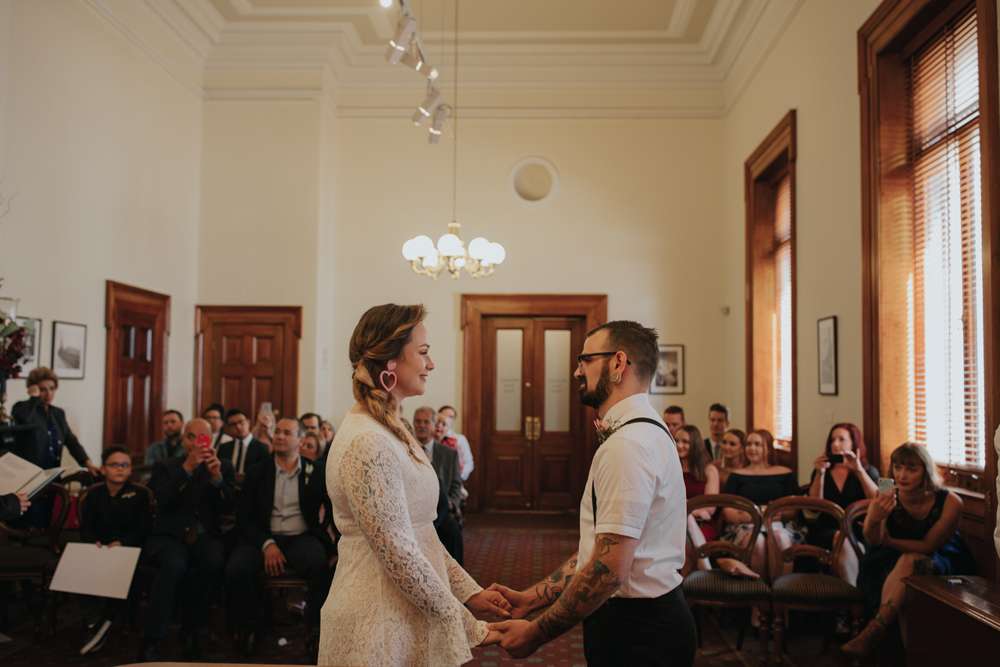 Their ceremony was short and emotional, “As we didn’t want to really focus on the formalities having a short ceremony suited us perfectly. Dylan’s family couldn’t make it and neither could one of my bridesmaids who also lives in The States so we had one phone on Facetime with his mum and another phone Facetiming my third bridesmaid (who wore her dress for it even though she wasn’t there)! I walked down the aisle to Notes by Modern Baseball, a song which was on a playlist Dylan had made me when we first got together. I chose the song without Dylan knowing so his reaction was perfect and I didn’t expect to get as emotional myself as I did while walking down the aisle.”