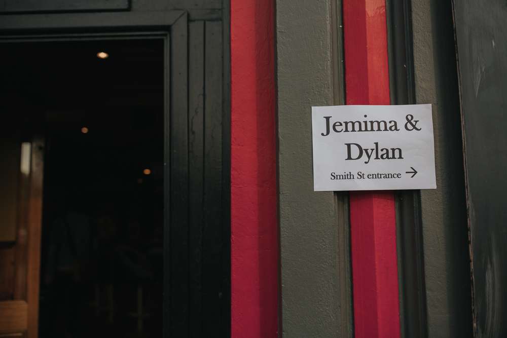 Their wedding day was an eclectic and relaxed pub party, “We wanted something casual but still very fun,” explained Jemima, “ultimately though, it had to be ‘us’. We are both vegan so had an entirely vegan wedding. It was really important to us to find a reception venue which could cater this in a way that wasn’t intimidating to our guests. The Gasometer were fantastic in providing us with a really accessible vegan menu of great canapes like tacos, sliders and spring rolls that were all familiar to non-vegans and also totally delicious. We also tried to incorporate as many elements as possible that could be reused or recycled. All flowers were given to people and the venue to dry out and keep as decor and both our outfits can be entirely worn again.”