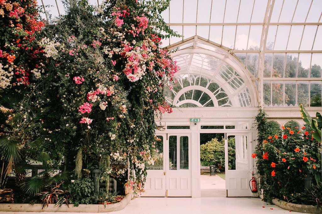 The bride wore the Paige dress from Wed2Be with Irregular Choice shoes. She walked down the aisle to Mysteries of Love by Angelo Badalamenti. “Our ceremony took place in a beautiful Victorian palm house on a rare sunny day in Liverpool. We had an intimate ceremony with just 60 guests and we opted for it to be unplugged as we wanted our guests to just enjoy the ceremony and really be there in the moment with us. All the music we had playing through the ceremony was from different David Lynch films and shows.”