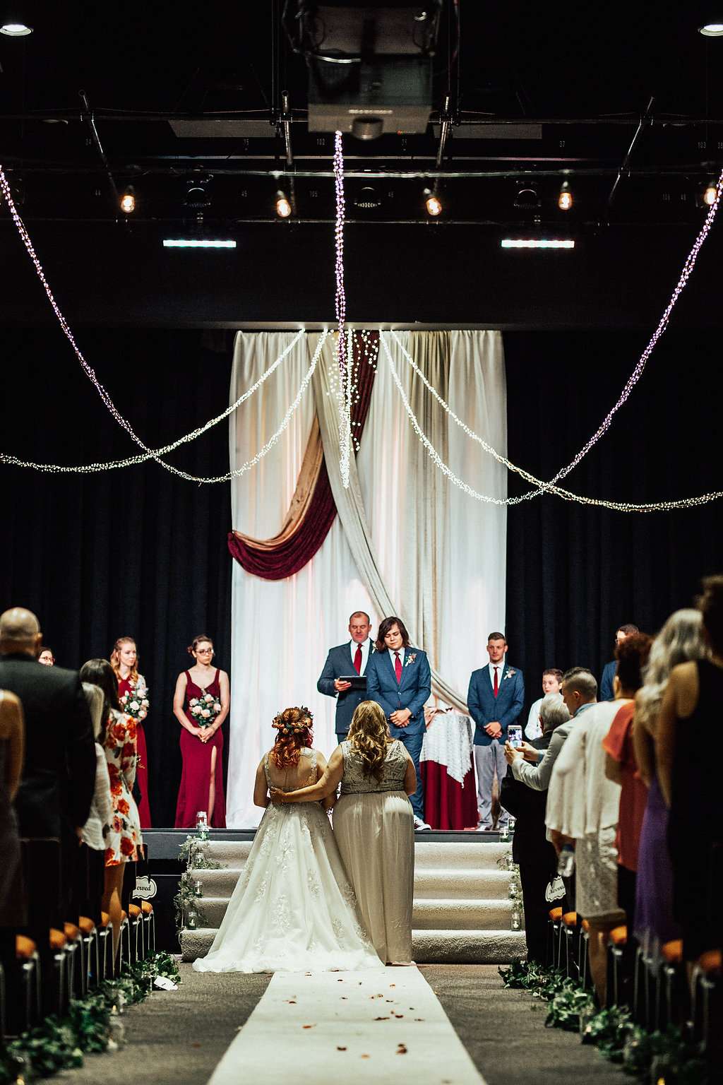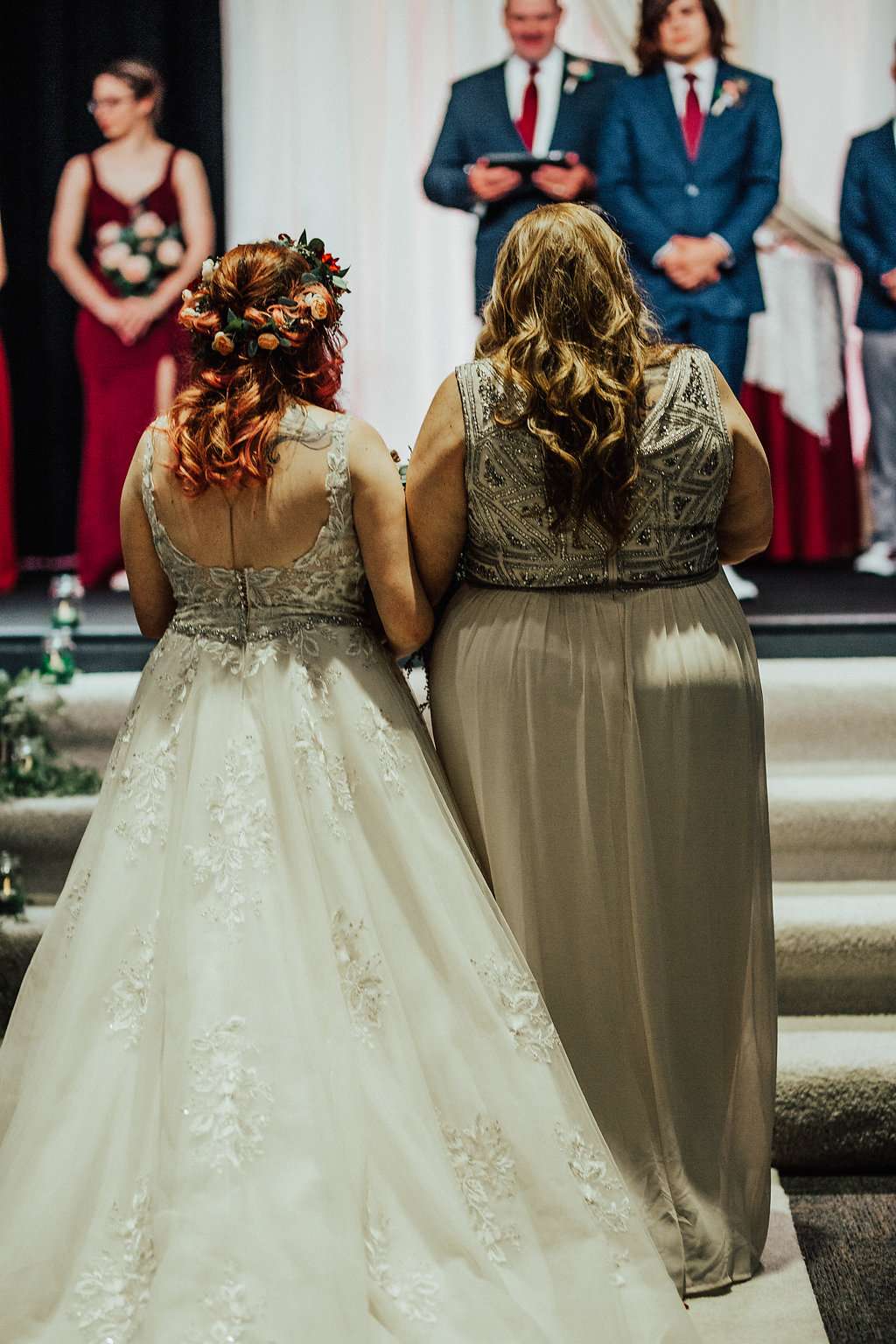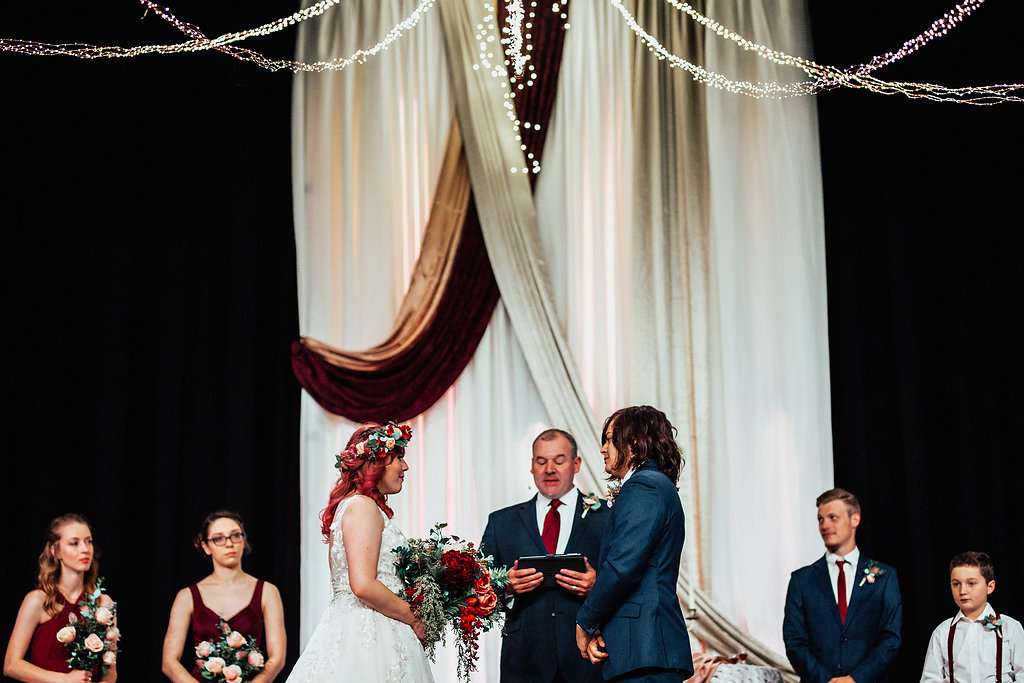 They hosted both their ceremony and reception at their church which is also where they first met in 2012! ” My uncle performed the ceremony and wrote personalised vows for us”, the bride continued. “Our ceremony was lighthearted and fun. Everyone thought the groom was going to pass out though! During communion, we played the lyric video for Kari Jobe’s The Garden and utilised the growing ivy aesthetic to complement our décor.”