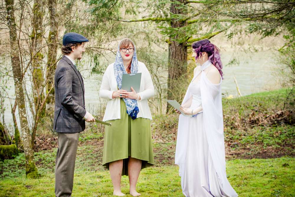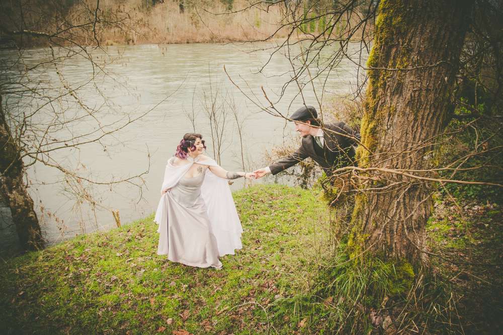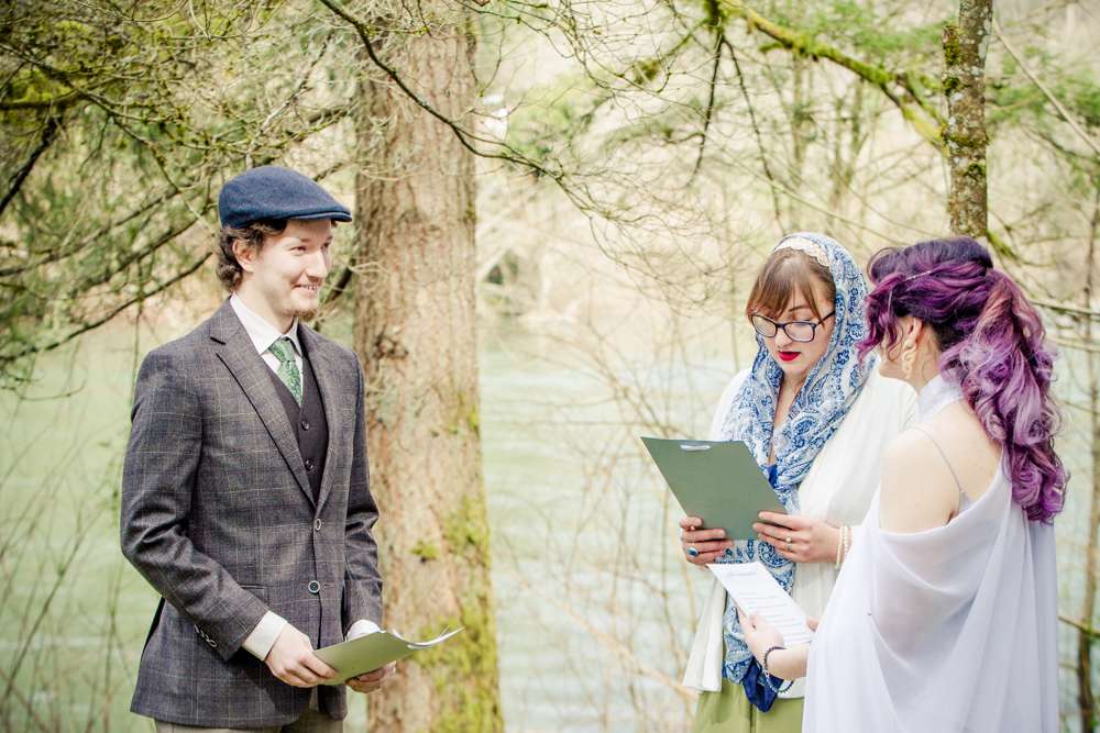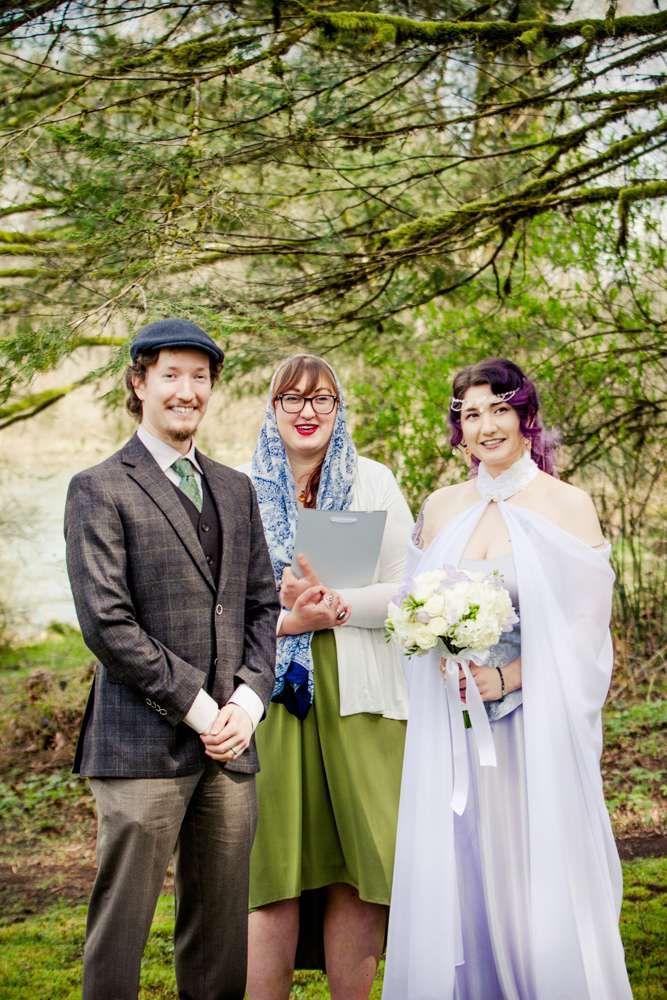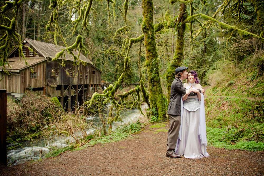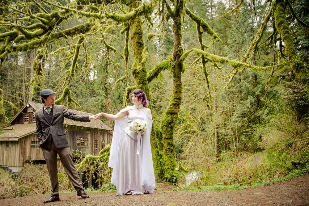 Their ceremony was small and intimate with only parents, siblings, and grandparents invited. “We had a friend officiate and were very fortunate to be friends with our photographer, so we were very comfortable with the only people there who were not family. I walked down the aisle to the theme from Jurassic Park (a beautiful classical piece composed by John Williams) and we both wrote the script for our officiant as well our own vows. Reading our vows to each other was a very special and powerful moment. I will never forget it. Our entire wedding day was beautiful and perfect. We even managed to avoid getting rained on even though we have very rainy weather in the pacific northwest, particularly this time of year!”