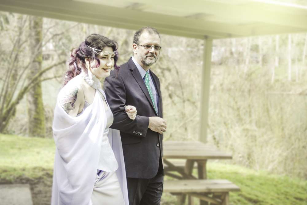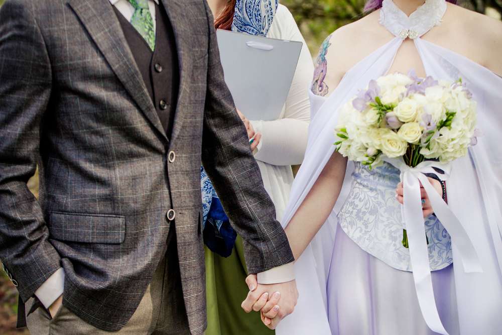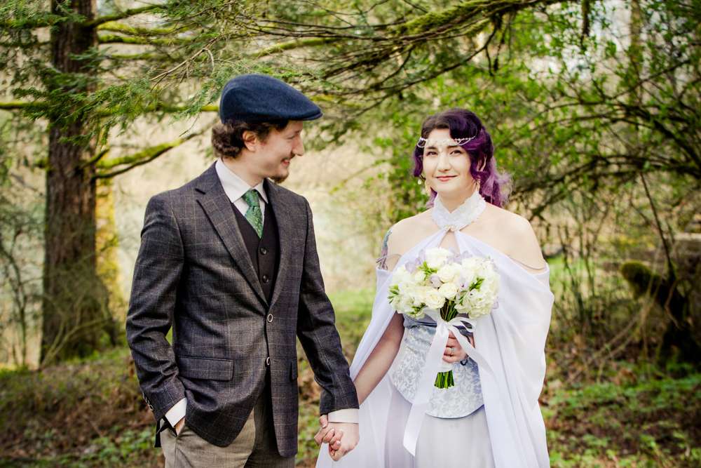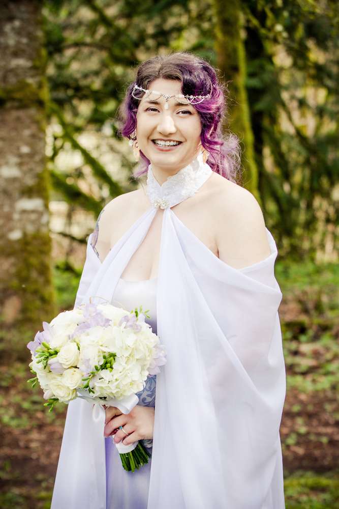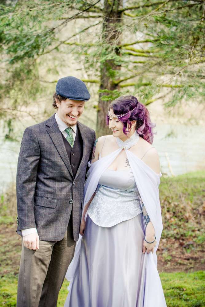 As a hint to their theme, Mercedes wore fantasy inspired accessories with her wedding dress. “I have a bit of an alternative appearance and style and chose to wear a light blue and lavender dress as well as Elven and fantasy inspired accessories. Roman has bit of an eclectic and vintage style and was happy that he wore something a bit different from a standard tuxedo.”