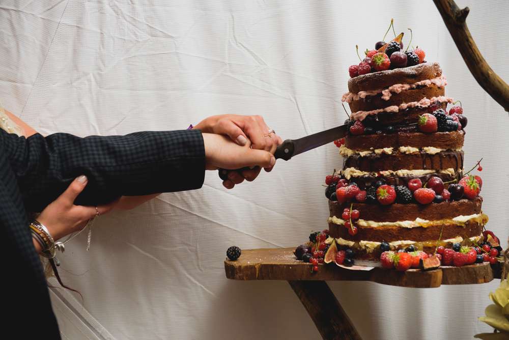 With guests camping, the outside ceremony with rugs as the aisle, the summer sunshine, marquee, and partying into the night with bands and a DJ, this is the perfect festival wedding vibe. And as with many festival marriages, the couple picked their own vows and promises and had a handfasting ritual.