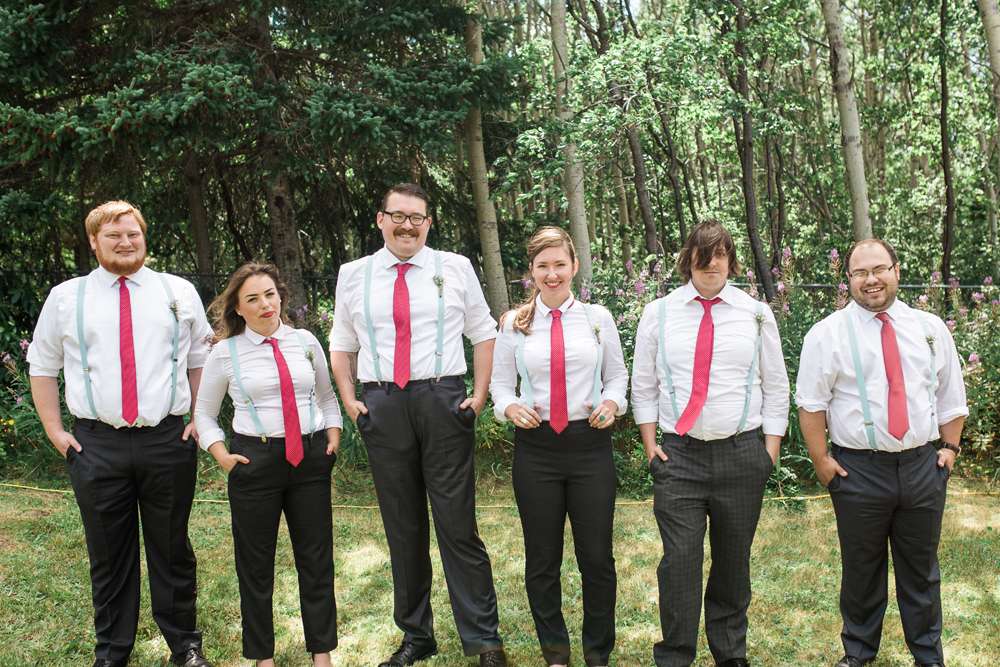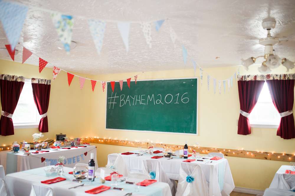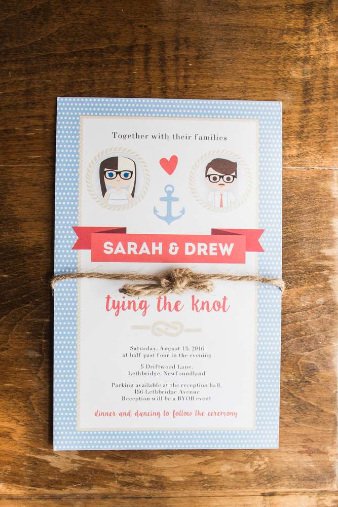 Sarah and Drew wanted their wedding to really showcase where they grew up (and hosted their wedding): Newfoundland and Labrador. Although they had been living in Alberta for a number of years, they wanted their wedding to reflect their love of the most easterly province of Canada. “We had been living in Alberta for a number of years, and wanted our wedding to reflect our East Coast roots, so we included elements that evoked the island everywhere we could, “said Sarah. “The aisle was lined with rubber boots, we used a lobster trap as a card holder and the reception tables were named after Newfoundland communities. The head table was named Heart’s Content.”