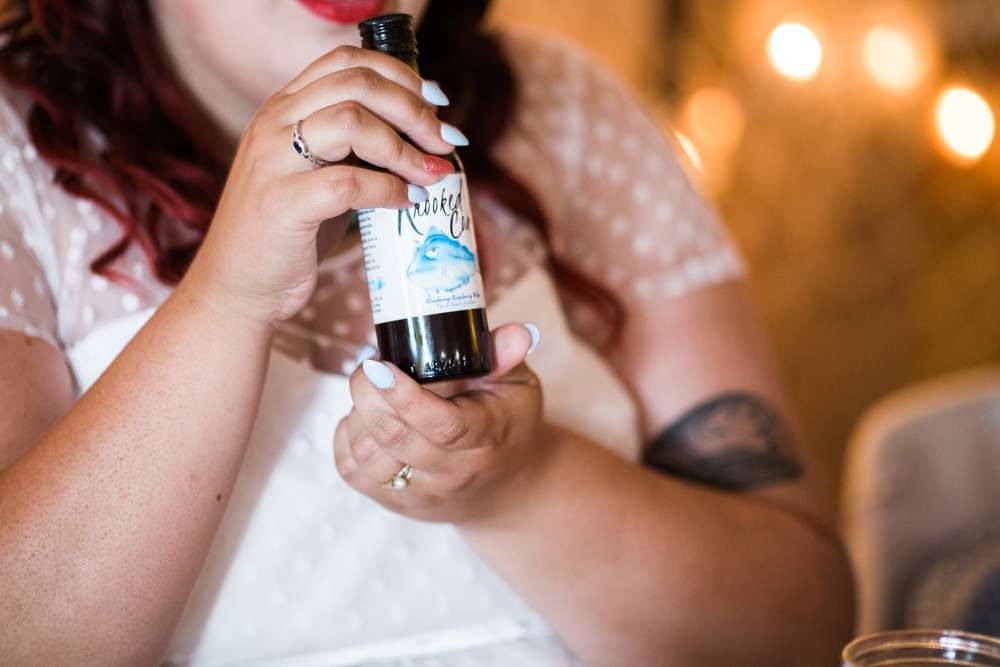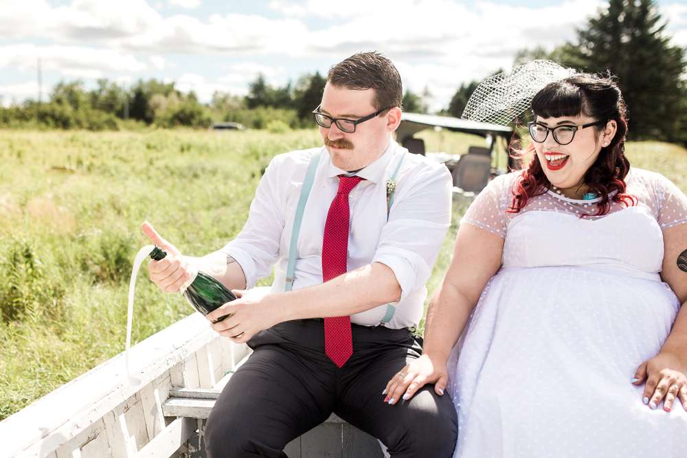 “Our wedding was far from traditional and we added our own twist to as much of it as possible. For catering we hired a chip van. Our guests were served onion rings, deep fried pickles and fish n chips! In lieu of a best man or maid of honour speech, our sisters decided to give us a ‘roast and toast’, which was both sweet and super embarrassing. My aunt performed a Screech-In ceremony which is a local ritual performed on folks from out of the province so that they can become honorary Newfoundlanders. It involves shooting awful rum and kissing a fish! Drew and I are both really into karaoke so we had to include some during the last hours of the reception too!”