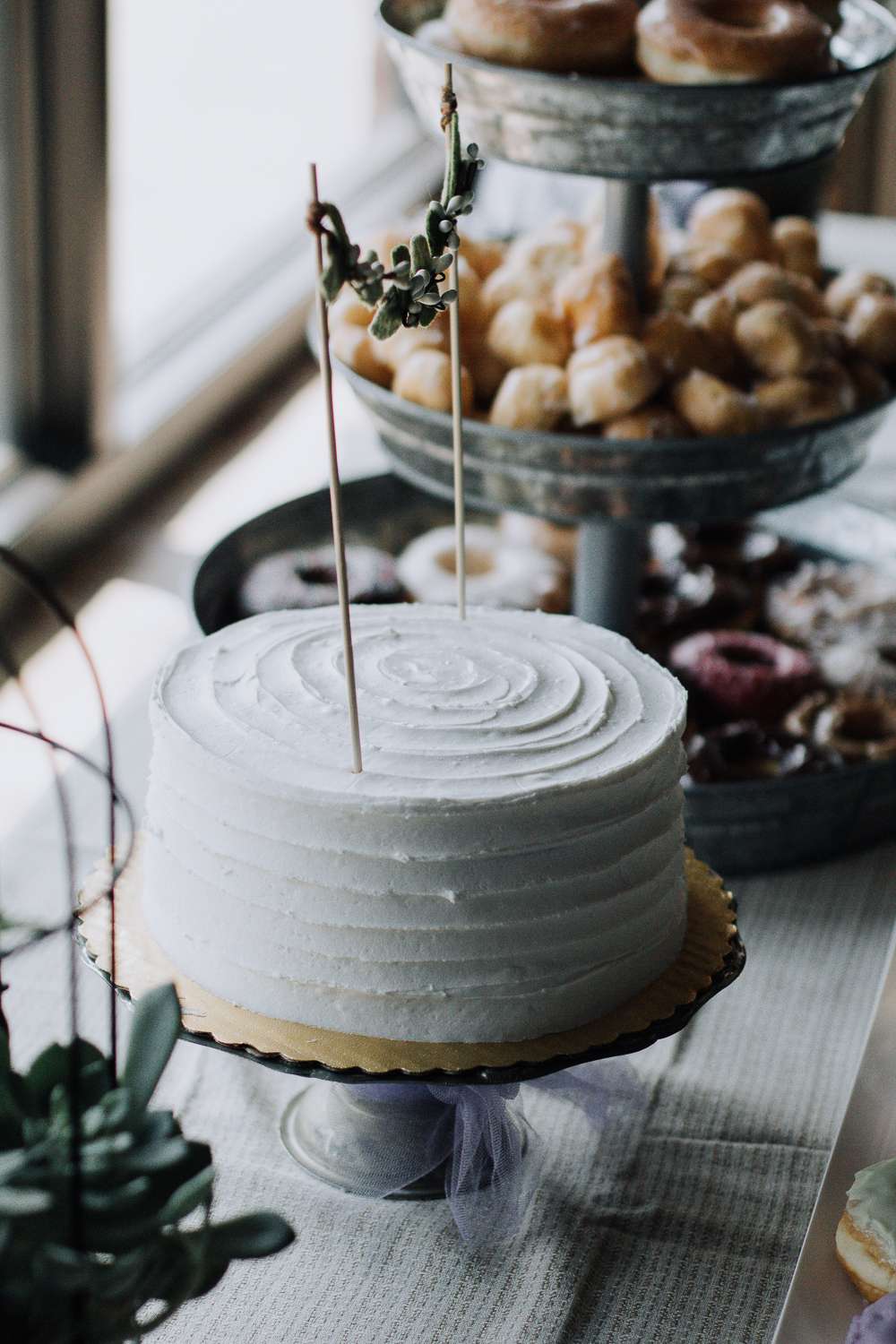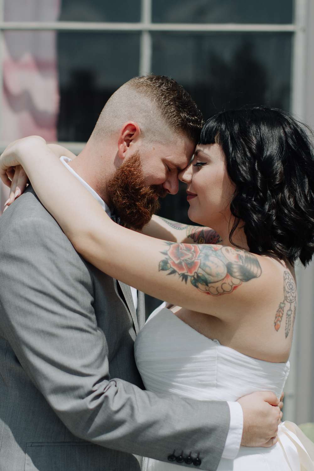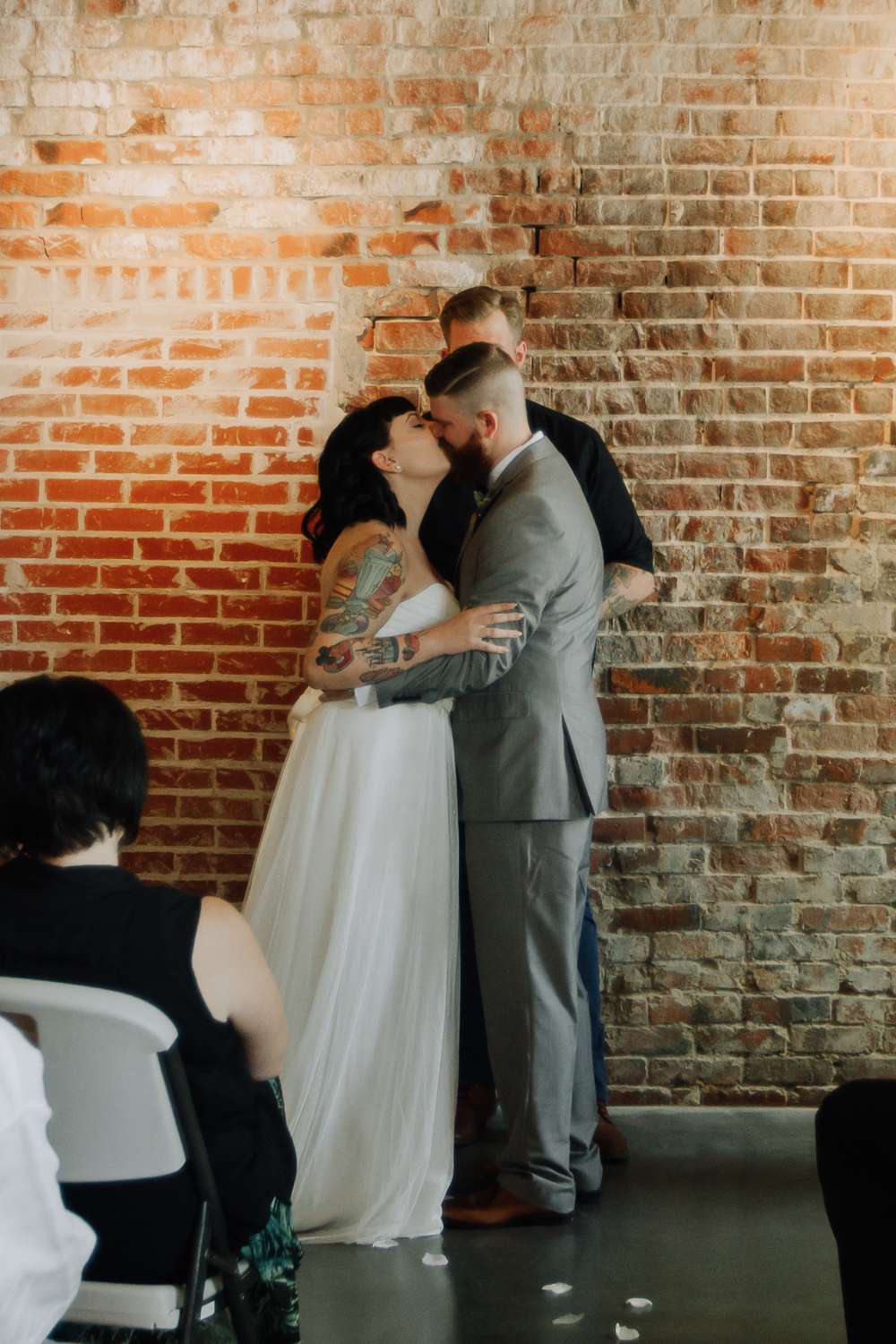 Describing the vibe, the bride said they went with “Simplicity. We didn’t want the big stressful wedding, we just wanted to celebrate us!” But there was room to also include the unique details, and she added, “I definitely think having our wedding on a Sunday morning with donuts and mimosas in a tattoo shop made us a little different!”